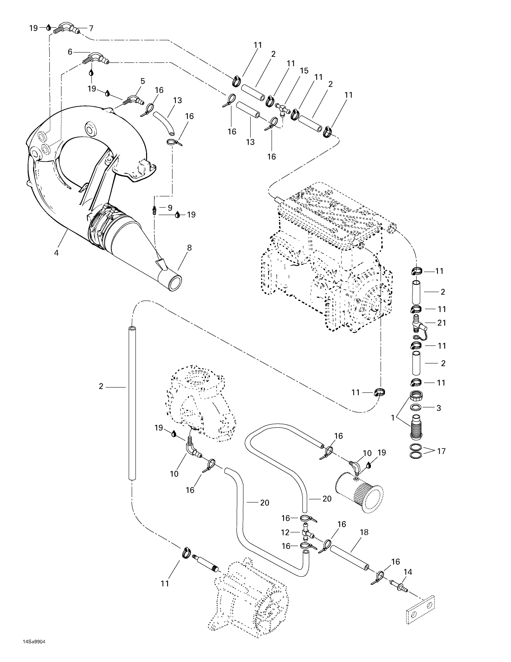 Sea-doo GTS, 5883, 1999 Cooling System Diagram