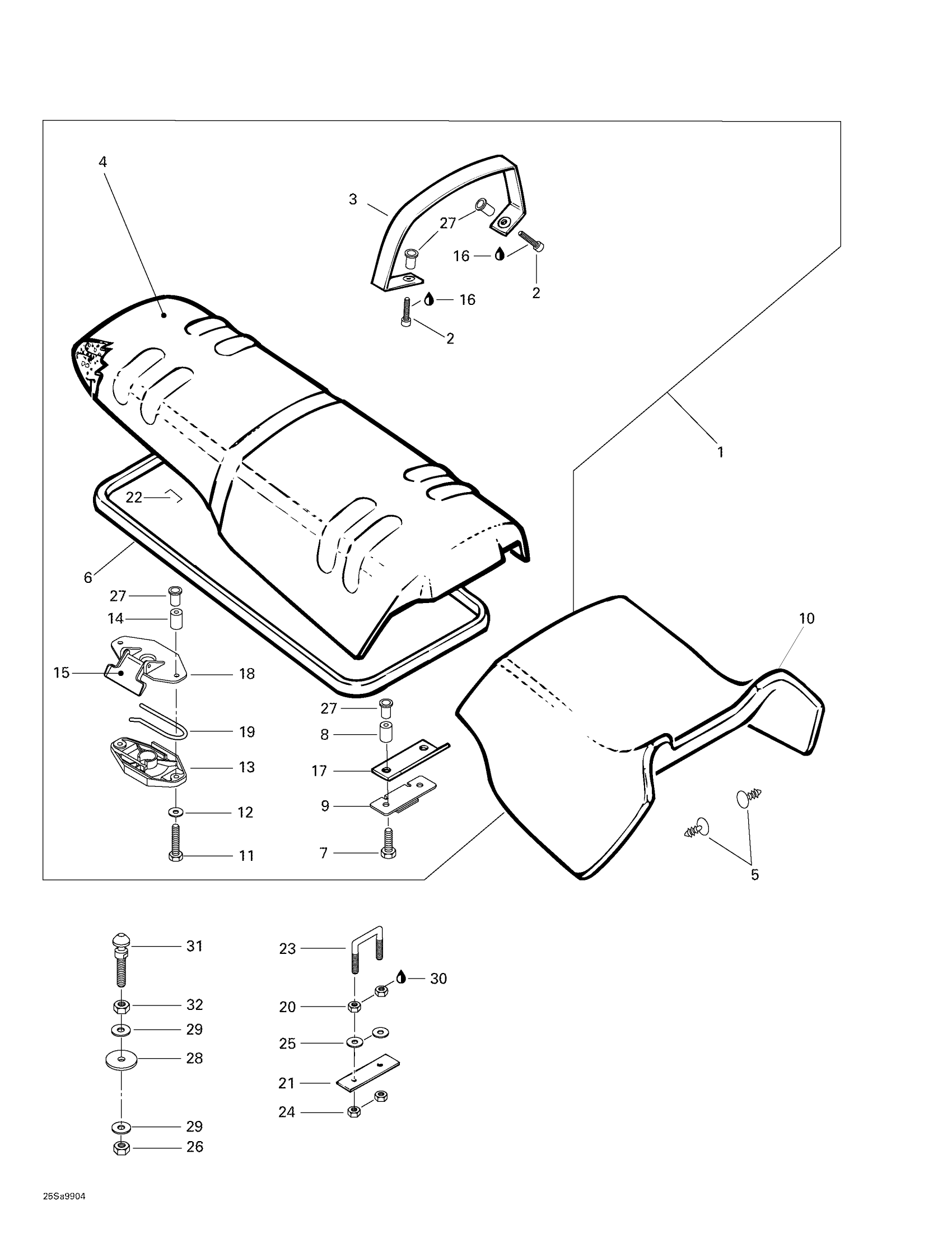Sea-doo GTS, 5883, 1999 Seat And Engine Cover Diagram