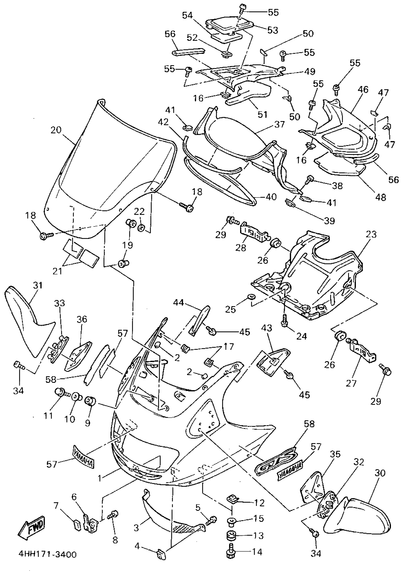 Yamaha GTS1000AFC (GTS1000A CA) 1994 COWLING 1 Diagram