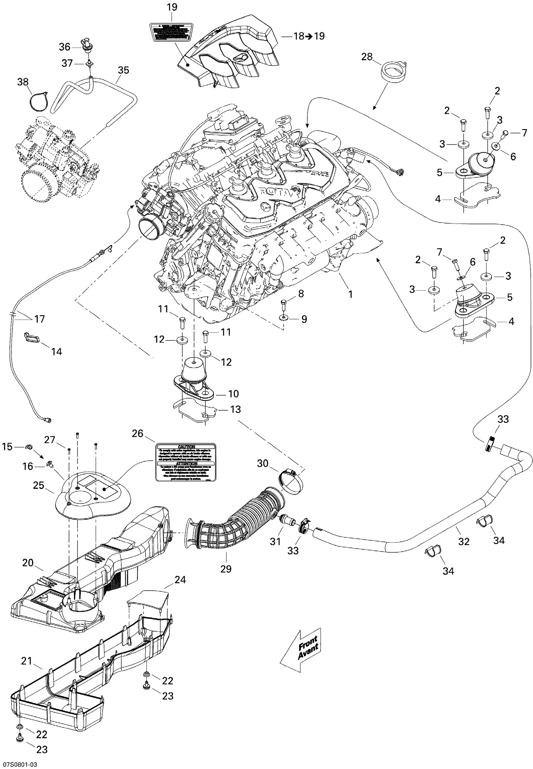Sea-doo GTX 155, 2008 01- Engine And Air Intake Silencer Diagram