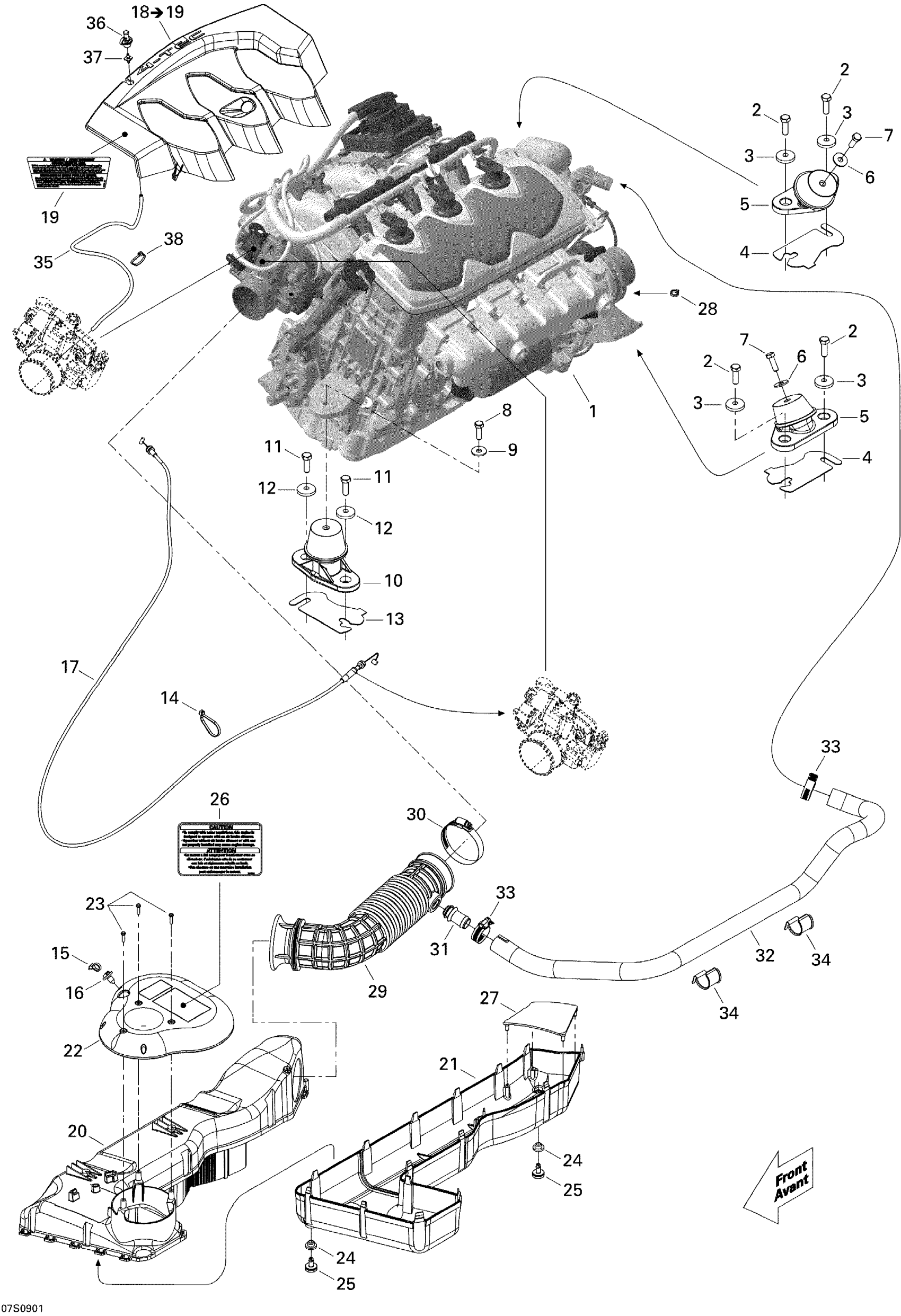 Sea-doo GTX 155, 2009 01- Engine And Air Intake Silencer Diagram