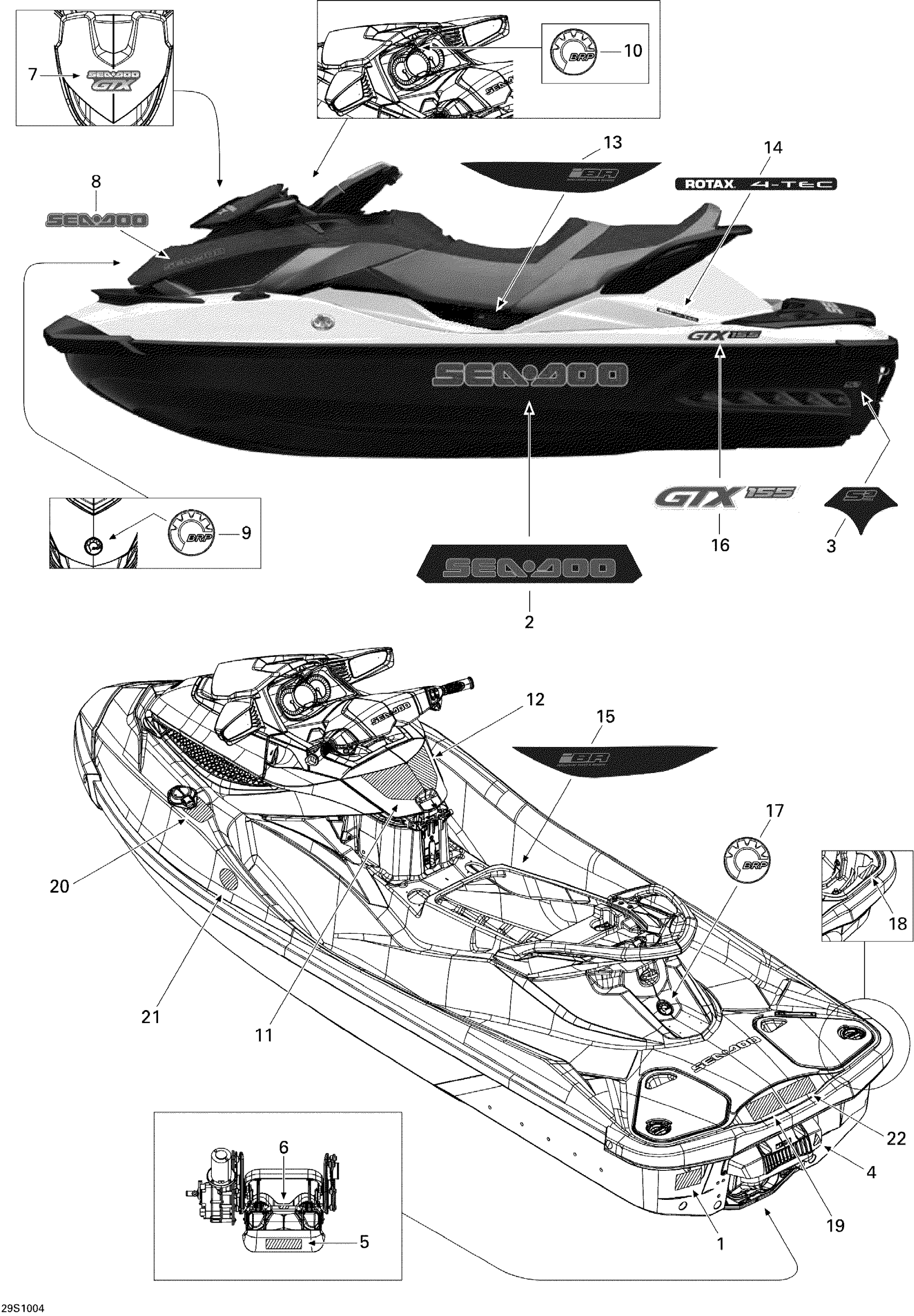 Sea-doo GTX 155, 2010 09- Decals Diagram