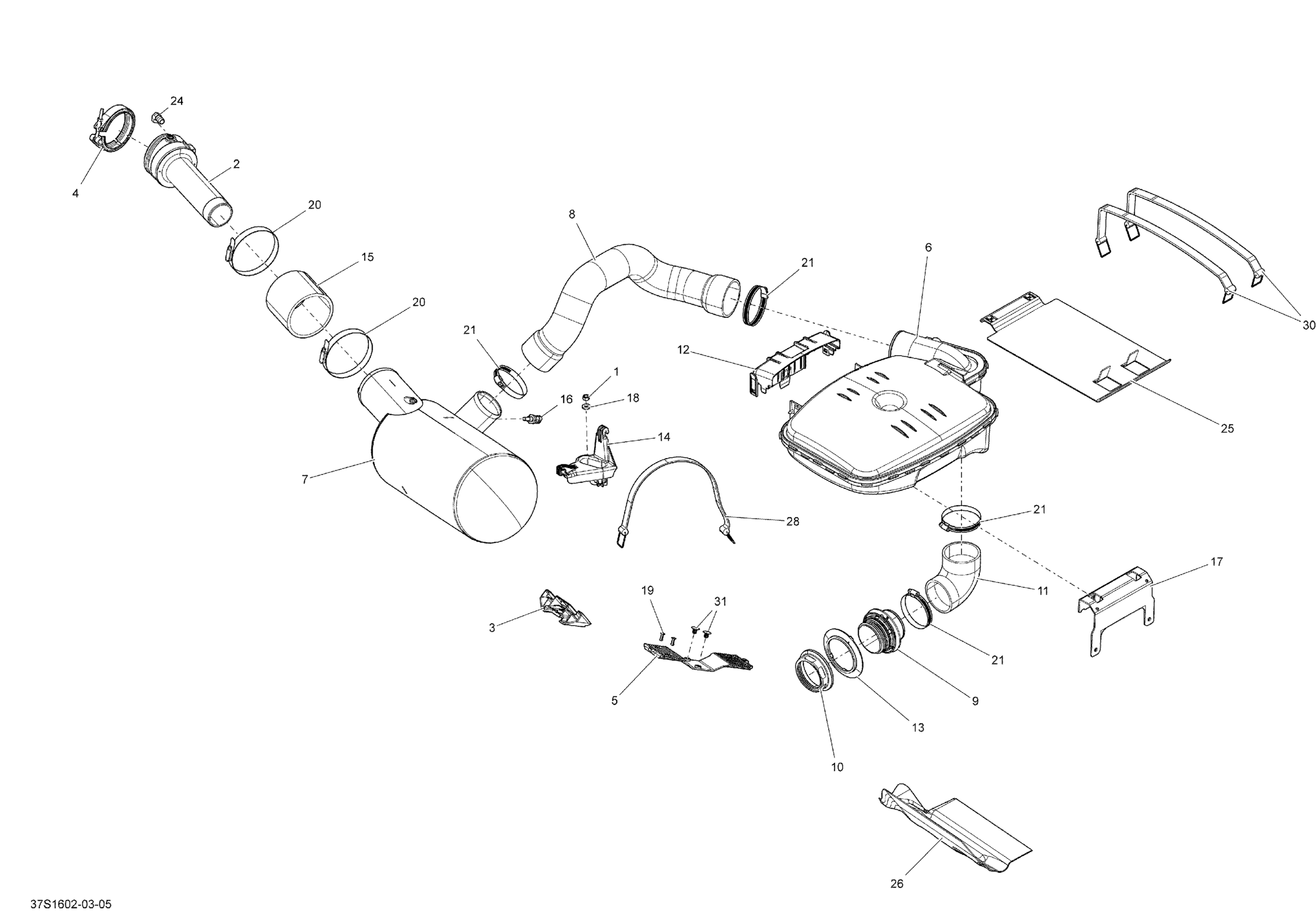 Sea-doo GTX, 2016 Exhaust System - Without suspension, Engine 300 Diagram