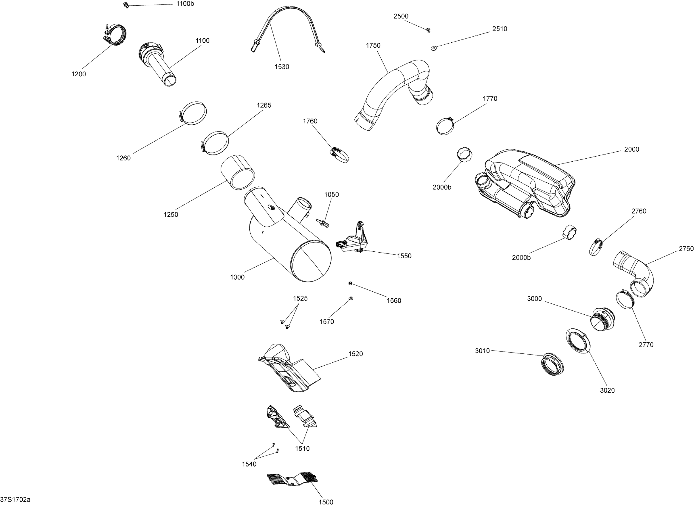 Sea-doo GTX, 2017 Exhaust System - Model with Suspension Diagram