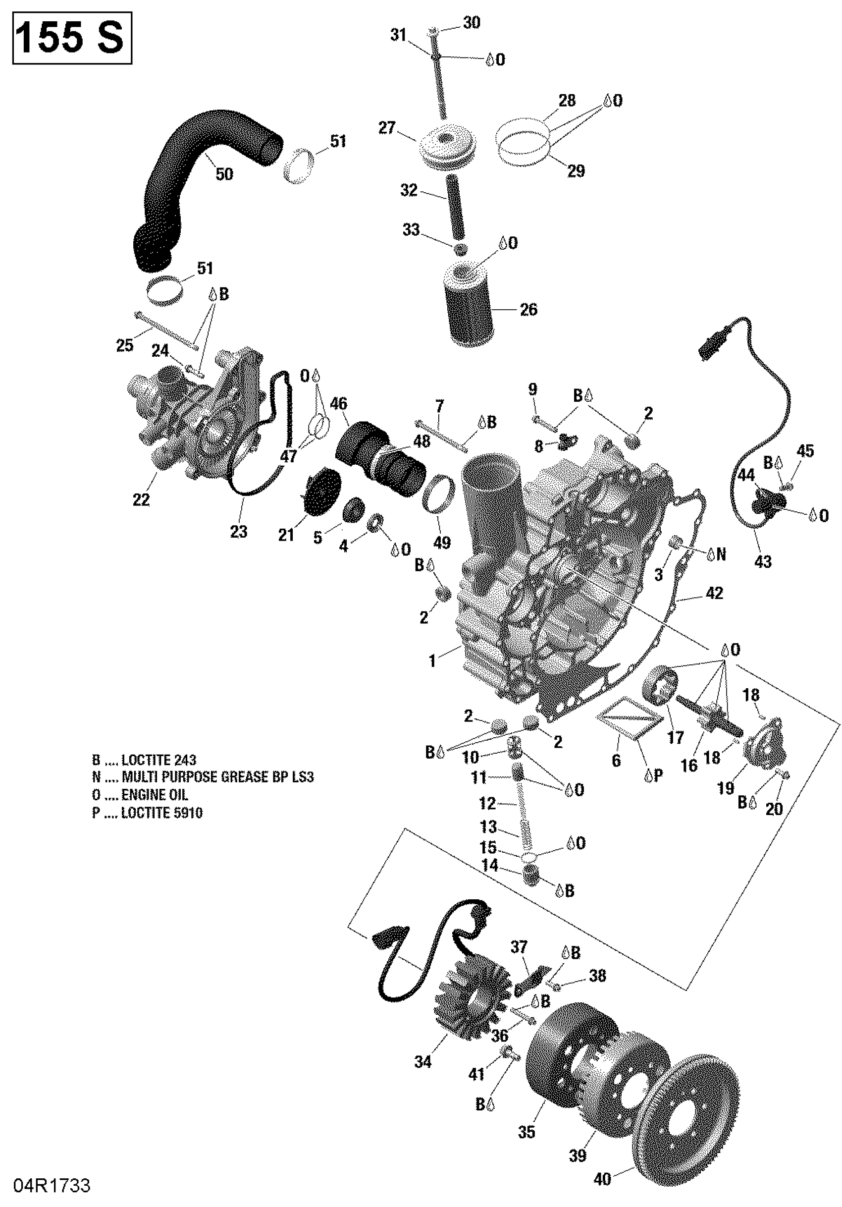 Sea-doo GTX, 2017 PTO Cover And Magneto - 155 Model With Suspension Diagram