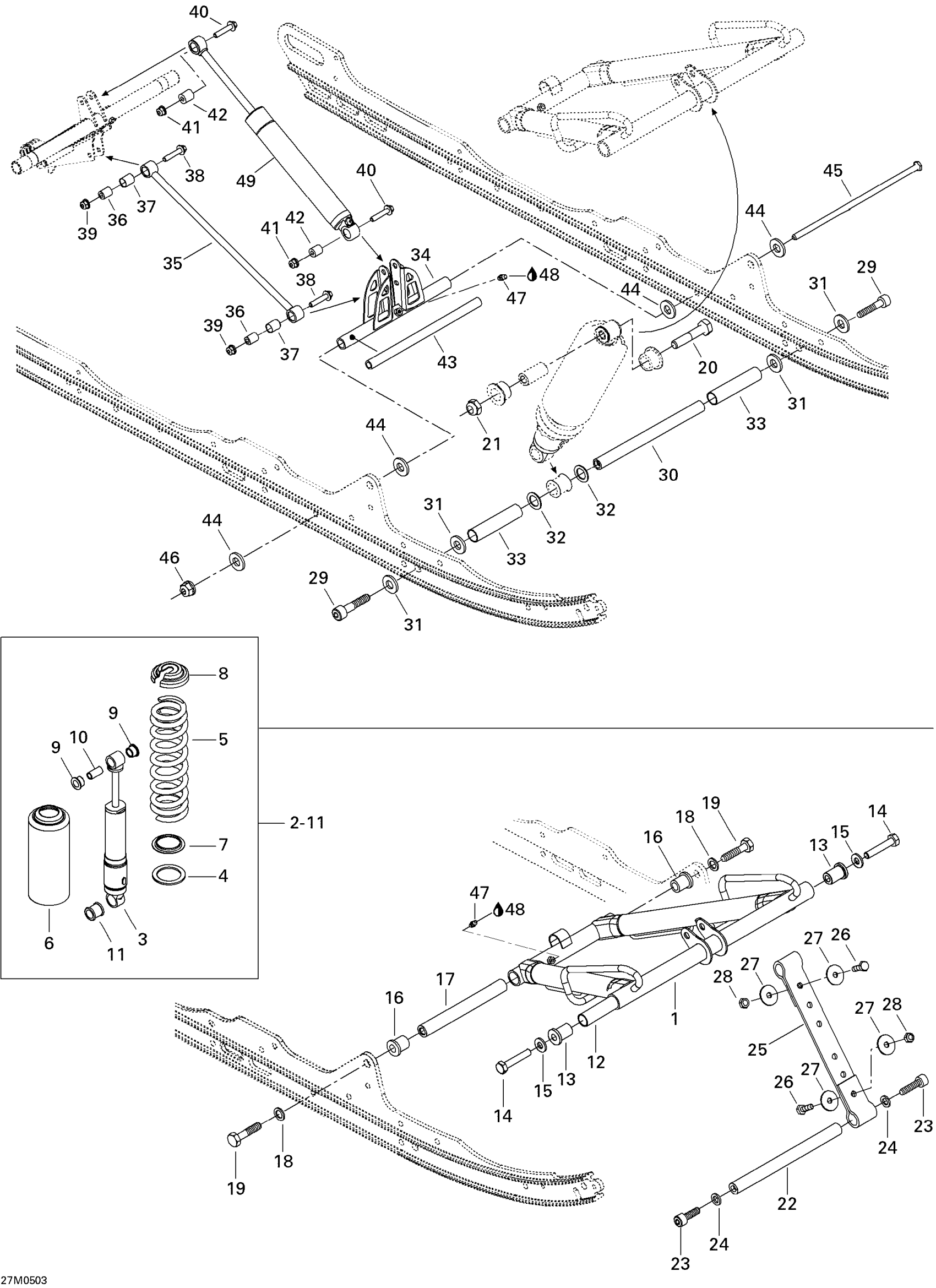 CENTER SHOCK SHAFT - Call your local BRP dealership This part replaces 503191258.