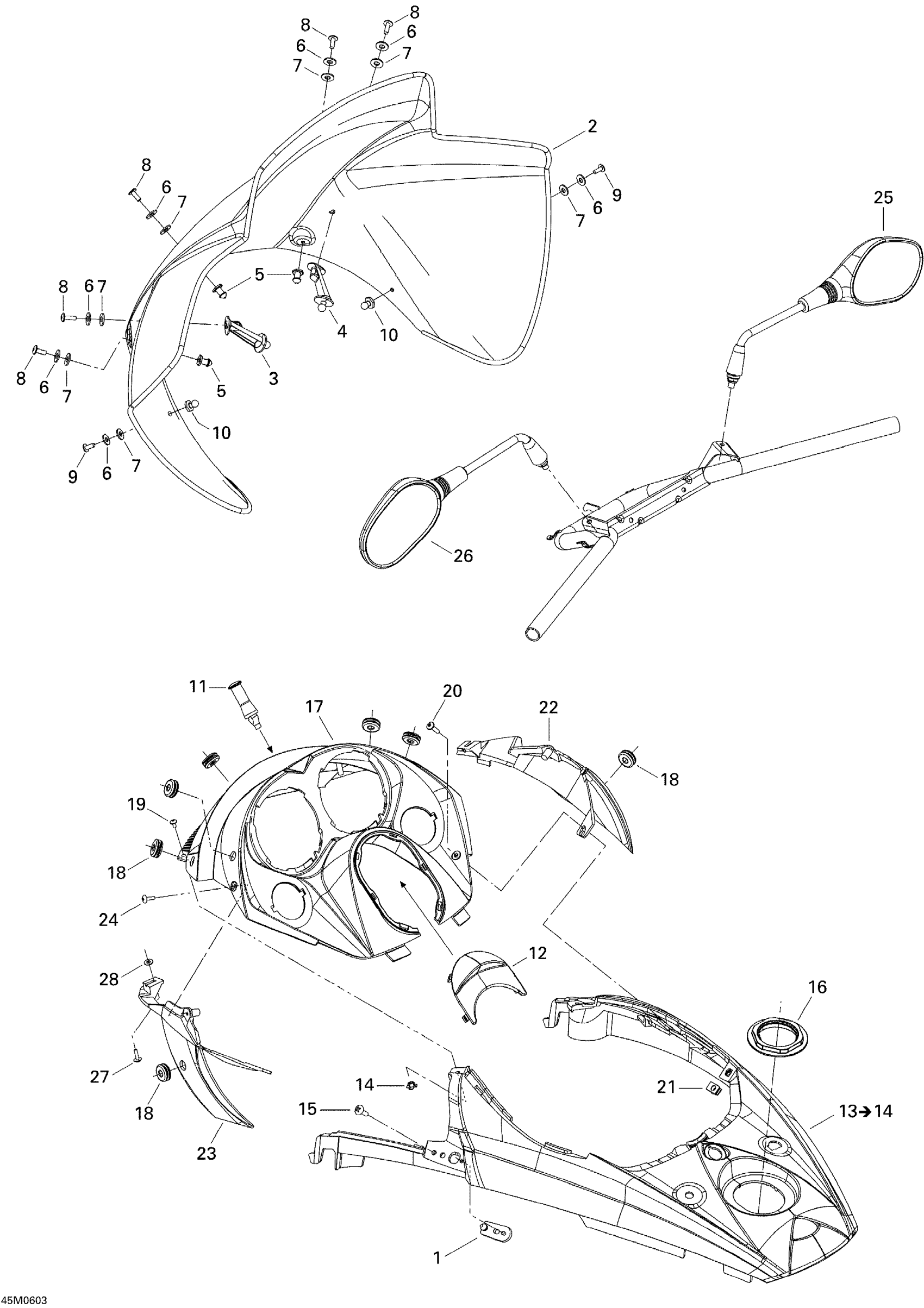 Ski-Doo GTX 380F, 2006 Windshield And Console Diagram
