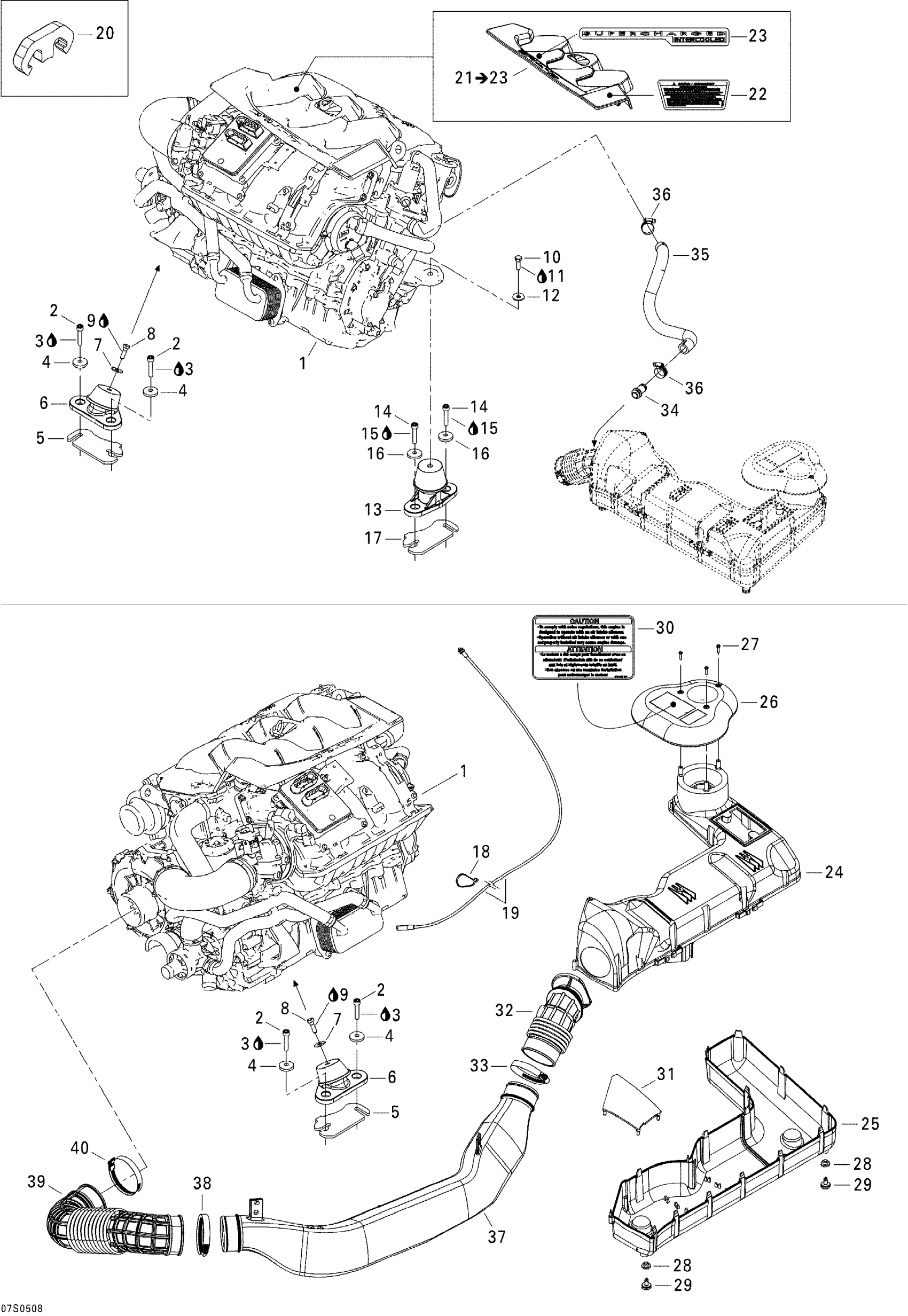 Sea-doo GTX 4-TEC, LTD SCIC, 2005 01- Engine And Air Intake Silencer Diagram