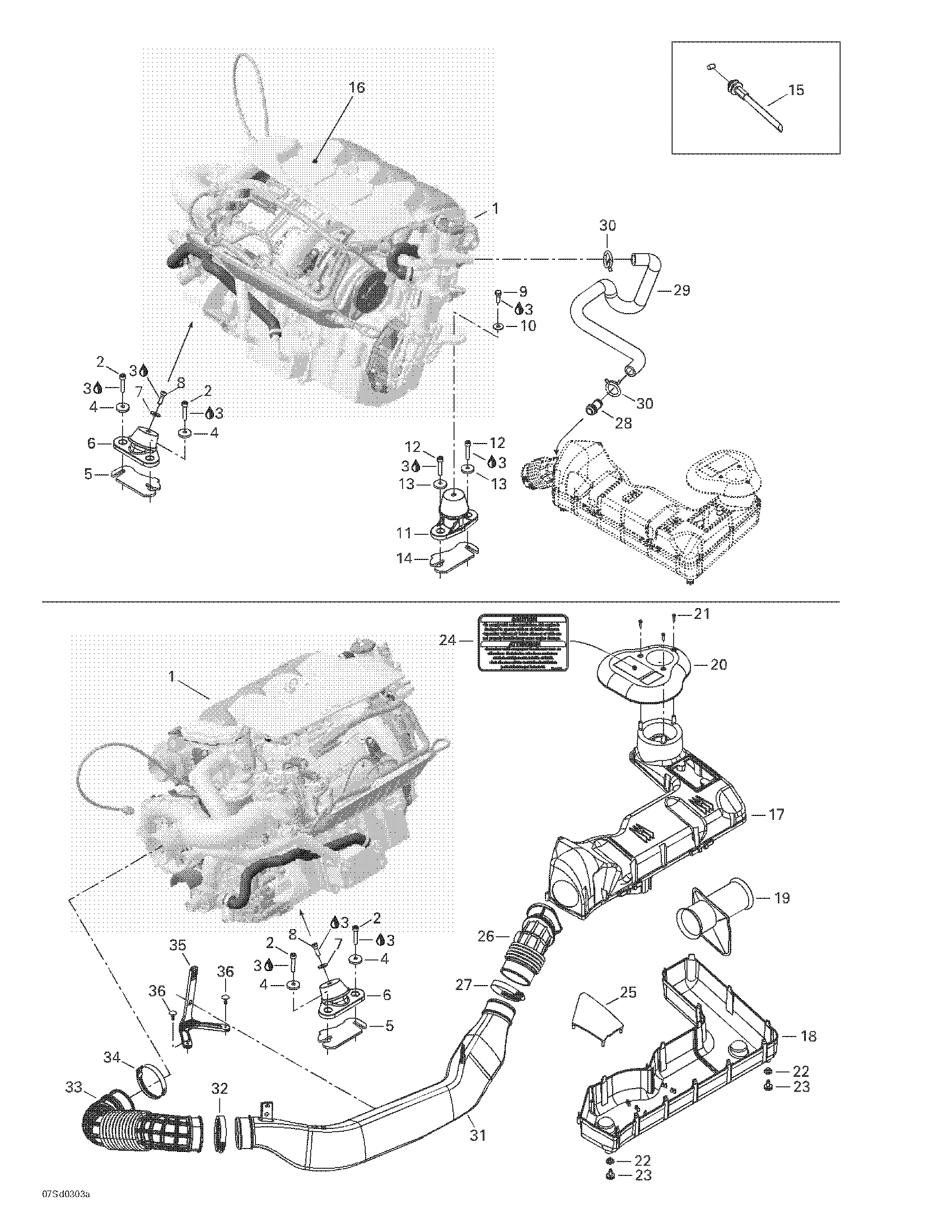 Sea-doo GTX 4-TEC, LTD Supercharged, 2003 01- Engine Support And Air Intake Diagram