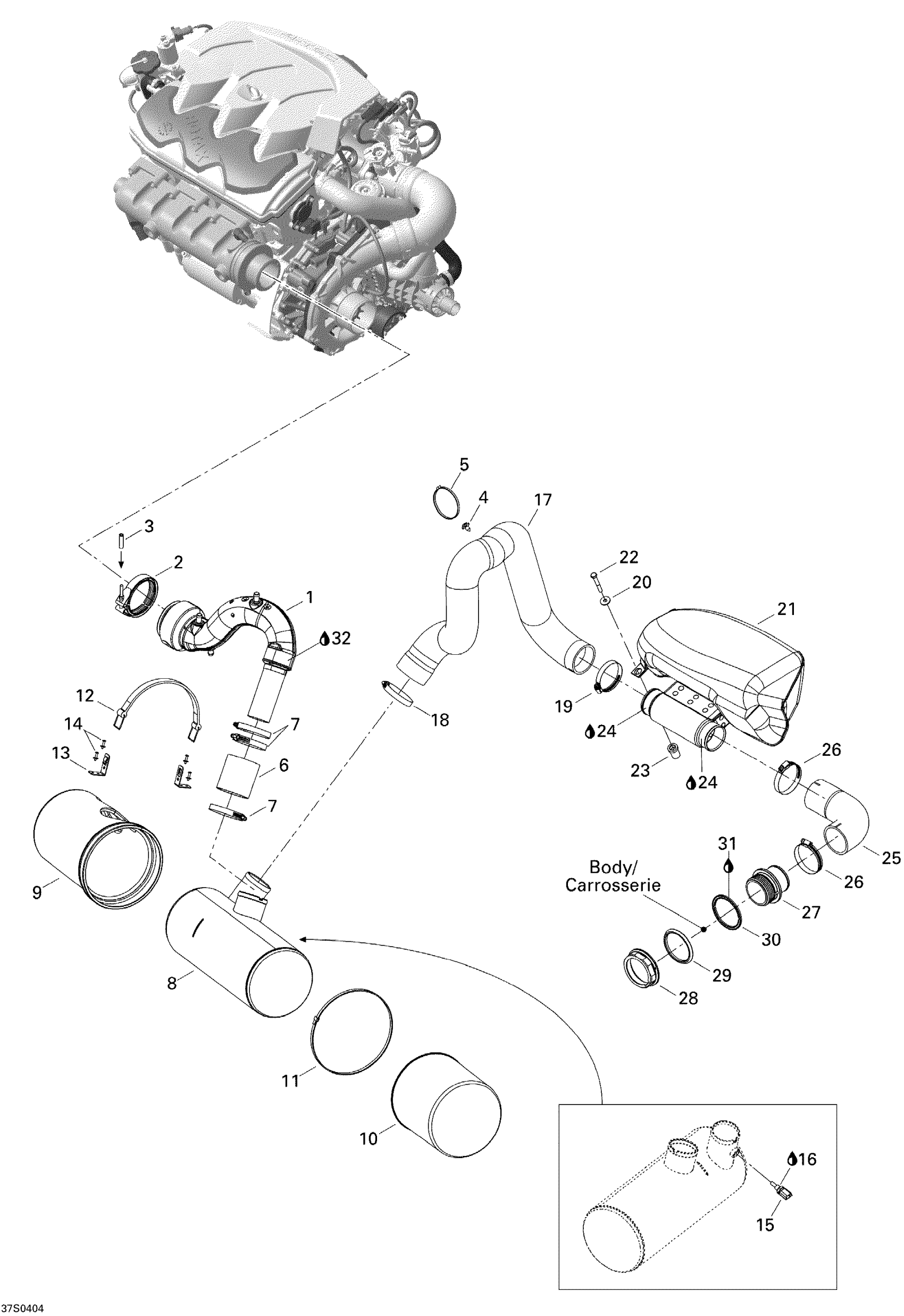 Sea-doo GTX 4-TEC, LTD Supercharged, 2004 01- Exhaust System Diagram