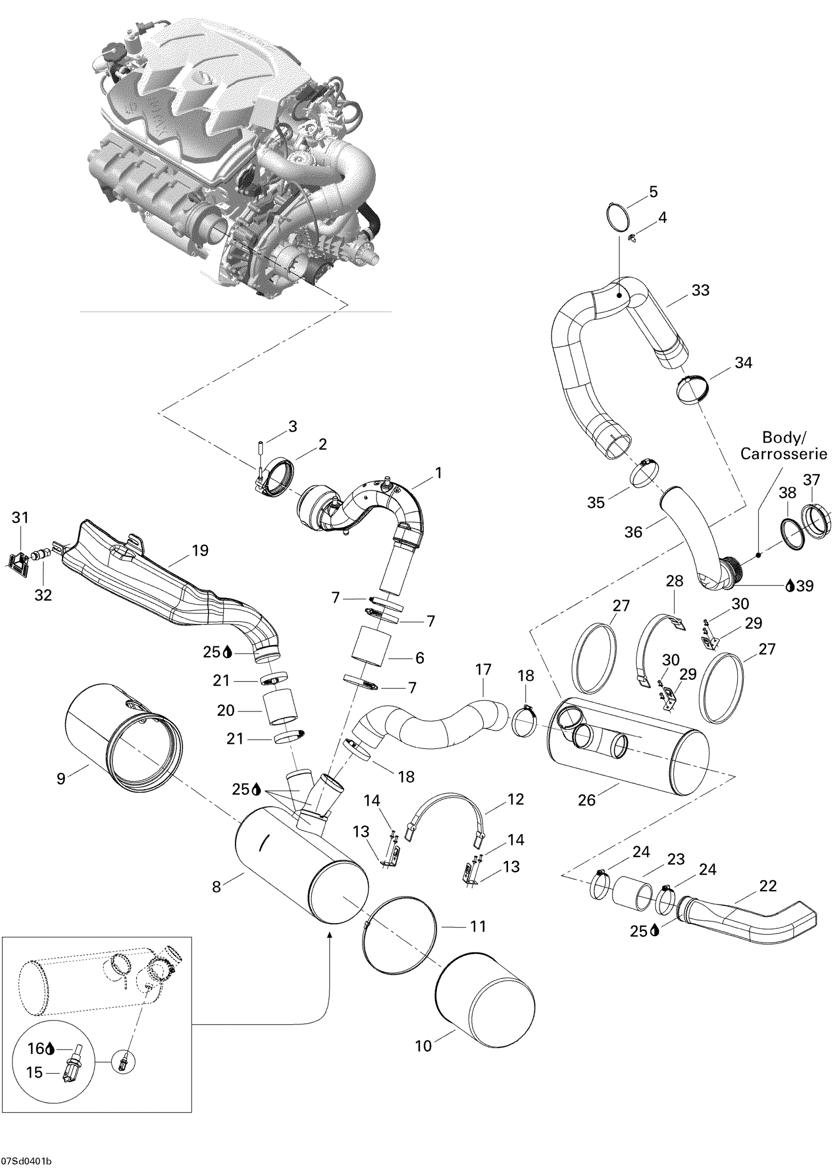 Sea-doo GTX 4-TEC, Special Supercharged, 2004 01- Muffler Diagram