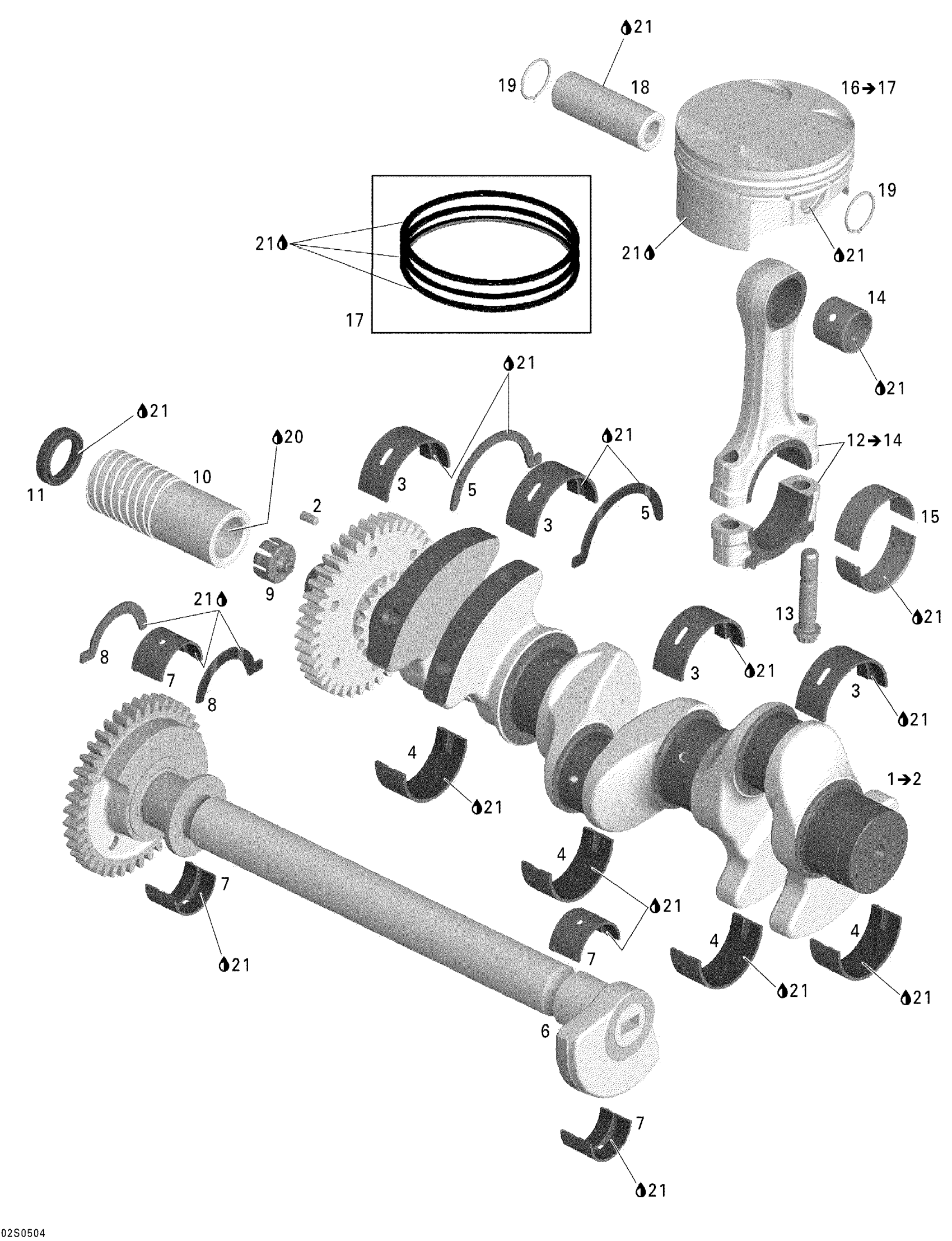 Sea-doo GTX 4-TEC, Supercharged, 2005 01- Crankshaft, Pistons And Balance Shaft Diagram
