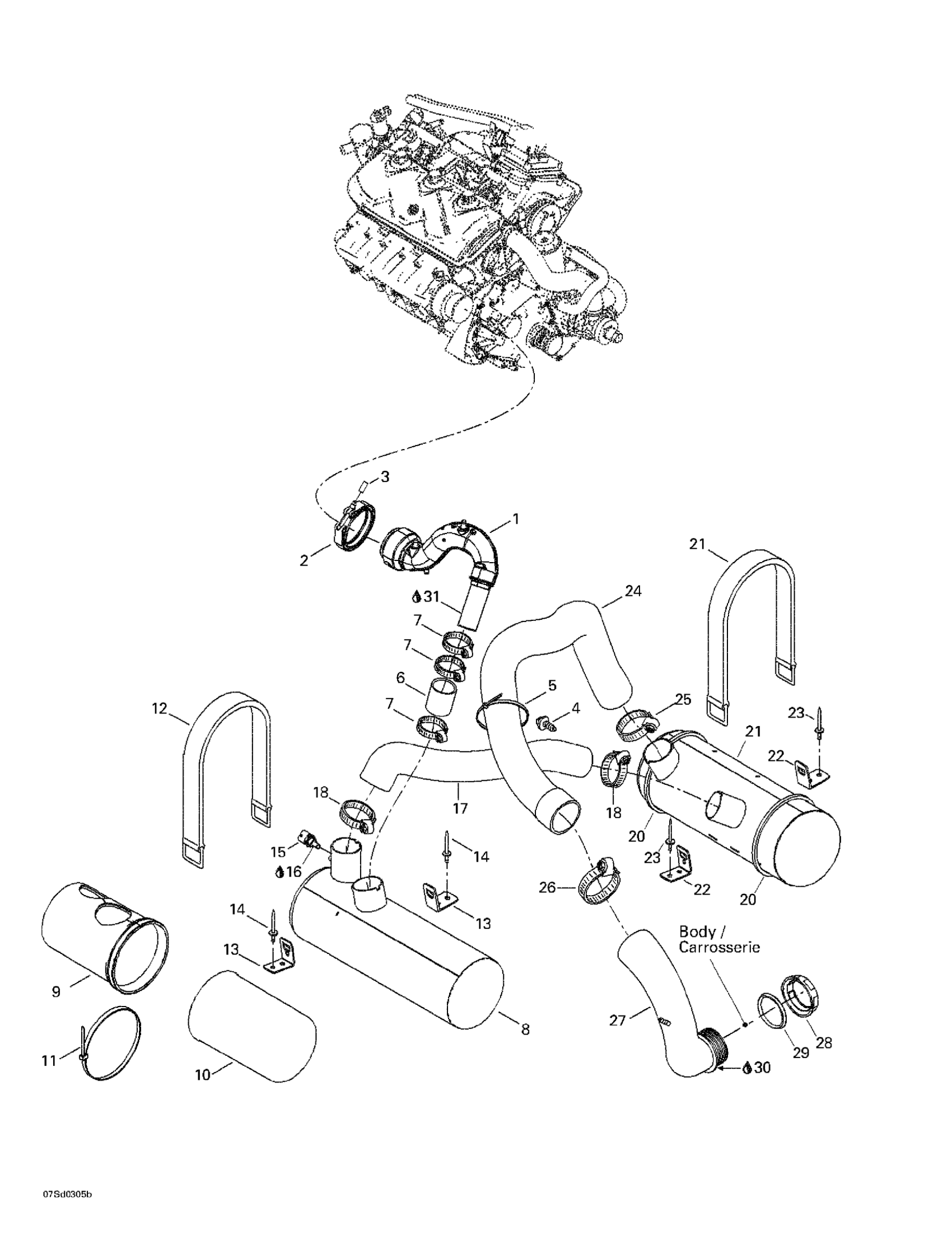 Sea-doo GTX 4-TEC Wake, 2003 01- Muffler Diagram