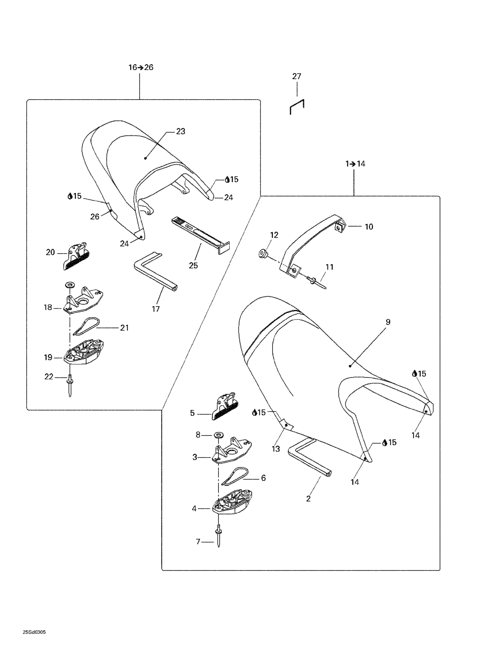 Rear Seat Ass’Y | Includes 16 - 26. BLUE (B-544) GTX 4-TEC 6125/6126.