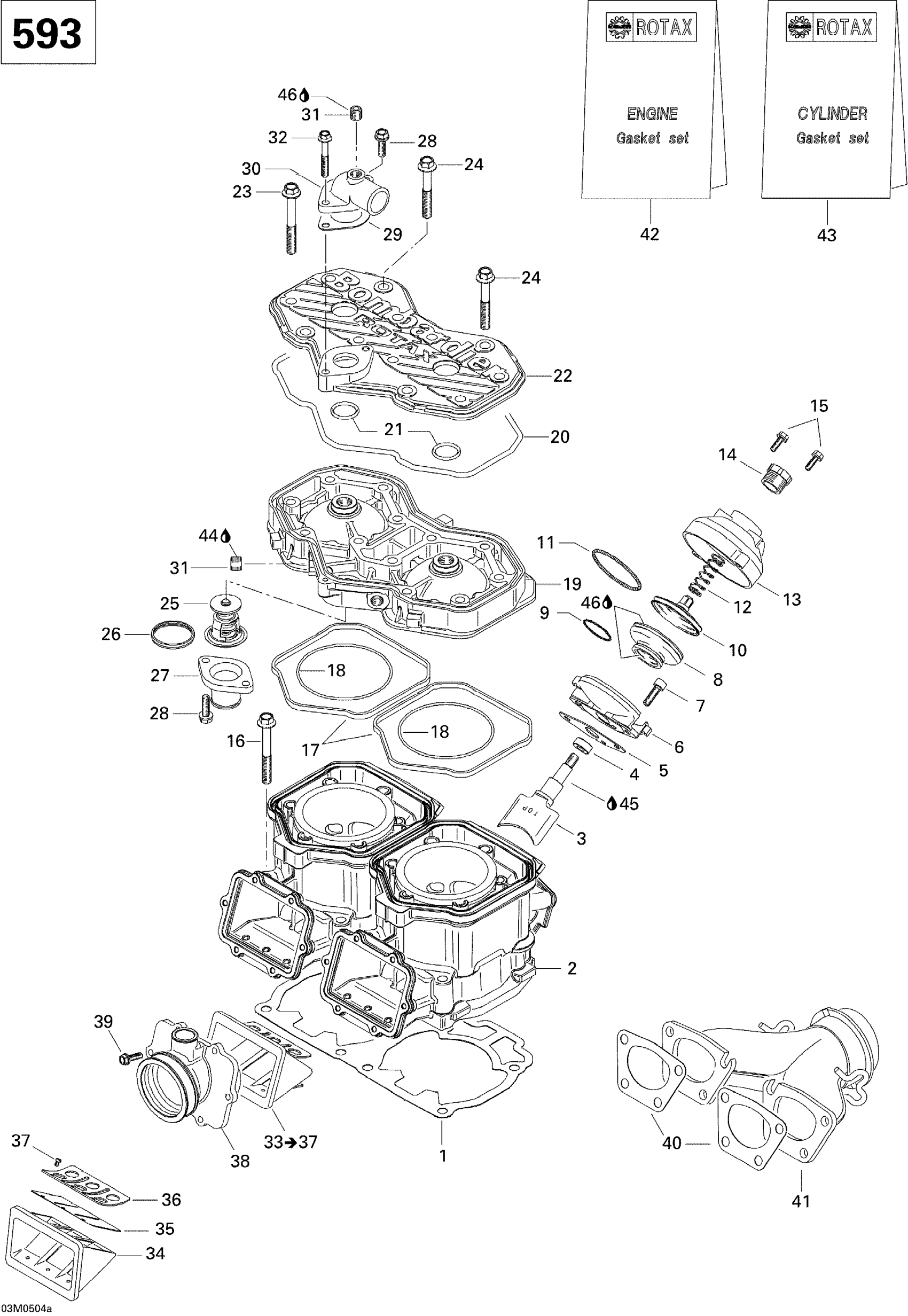 Ski-Doo GTX 500SS, 2005 Cylinder, Exhaust Manifold And Reed Valve 593 Diagram