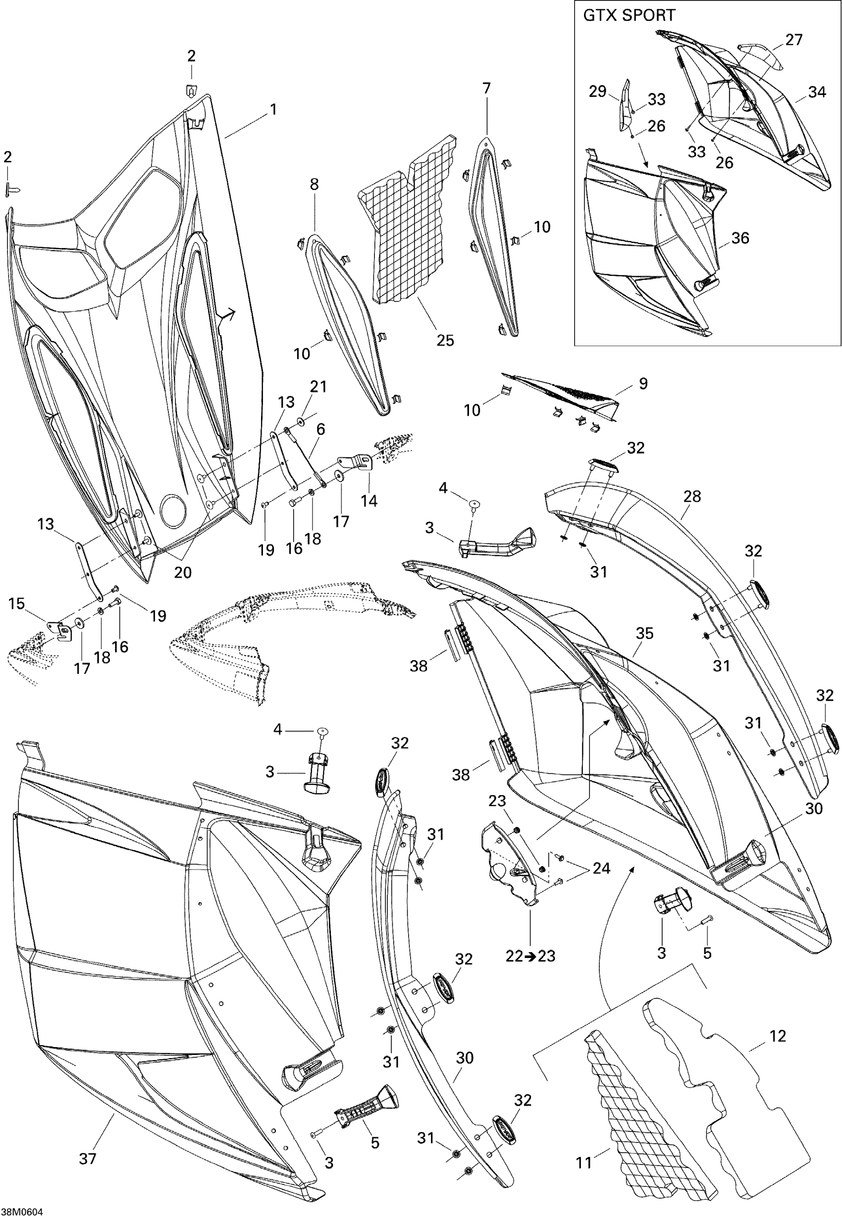 Ski-Doo GTX 500SS, 2006 Hood SPORT Diagram