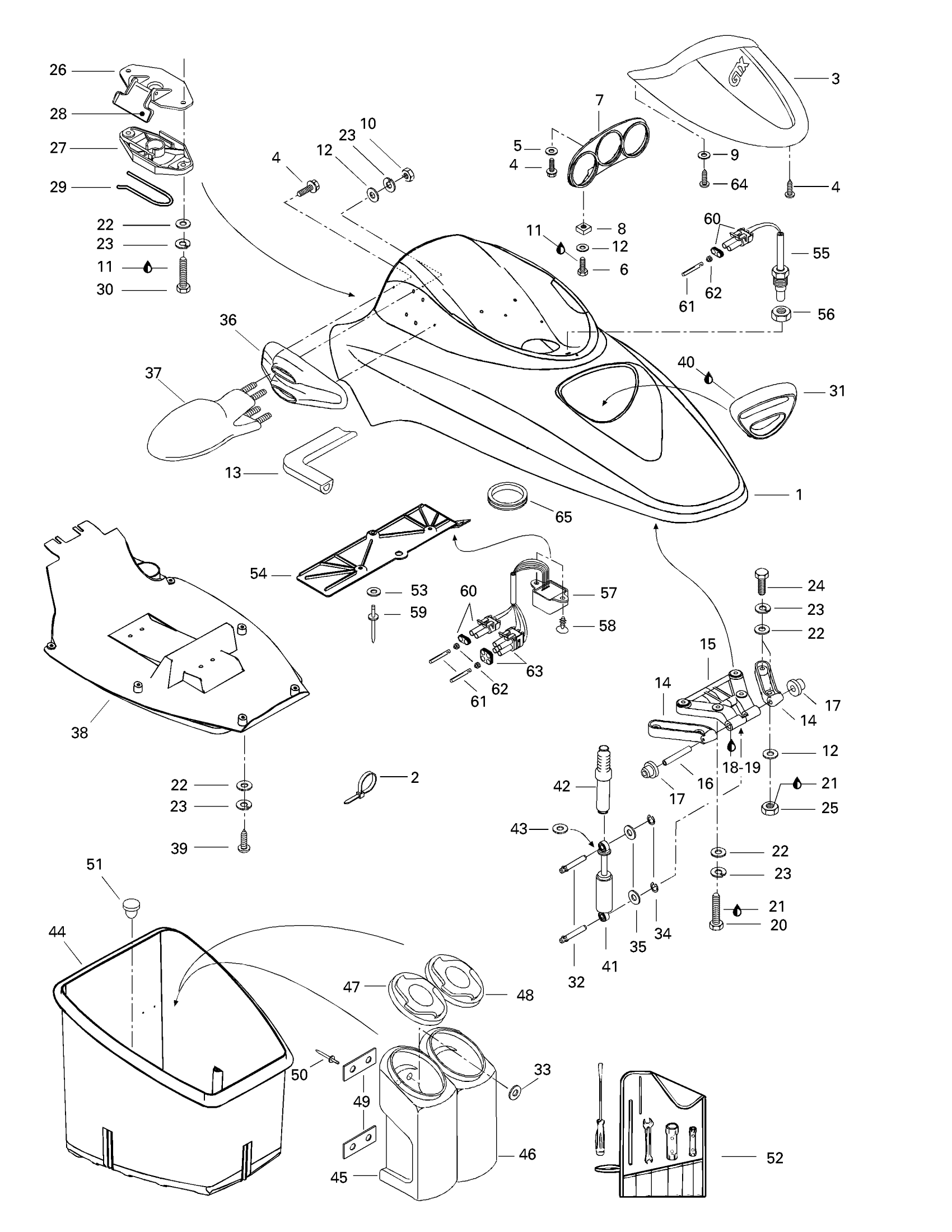 Sea-doo GTX, 5642, 1997 Front Storage Compartment Diagram