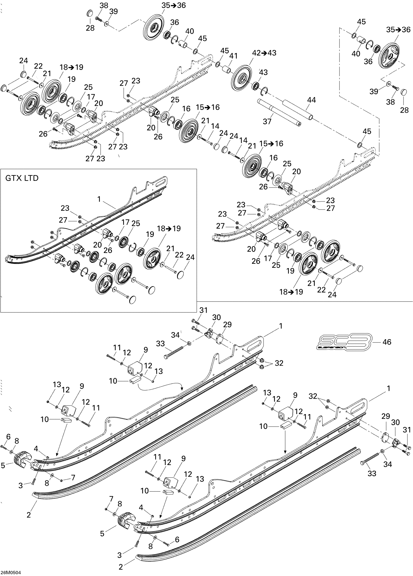 Ski-Doo GTX 600 HO, 2005 Rear Suspension 600HO Diagram