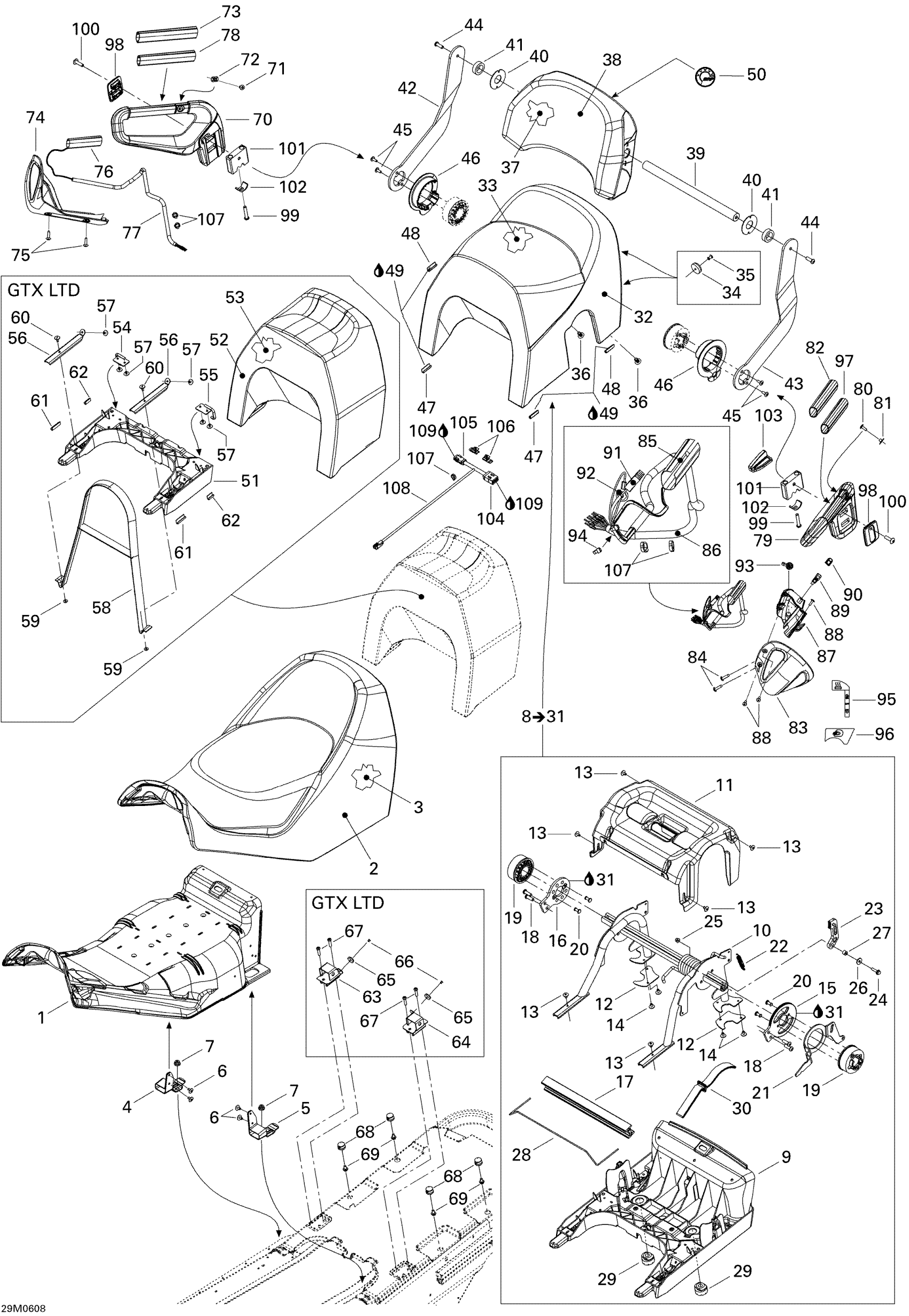Ski-Doo GTX 600 HO SDI, 2006 Seat Diagram