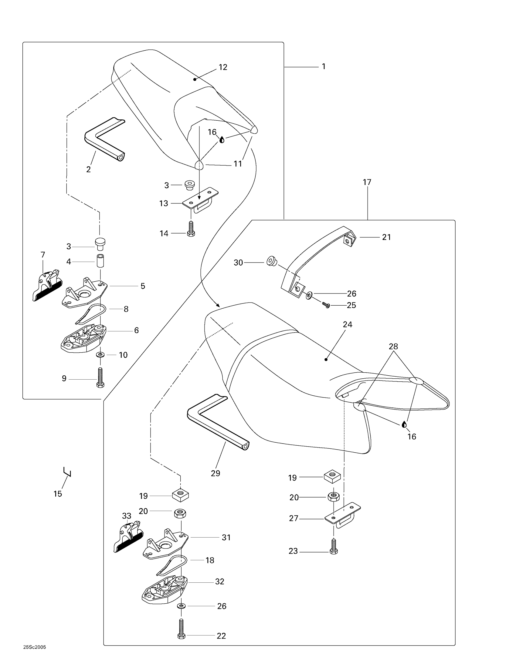 Sea-doo GTX DI, 5649/5659, 2000 09- Seat Rear Diagram