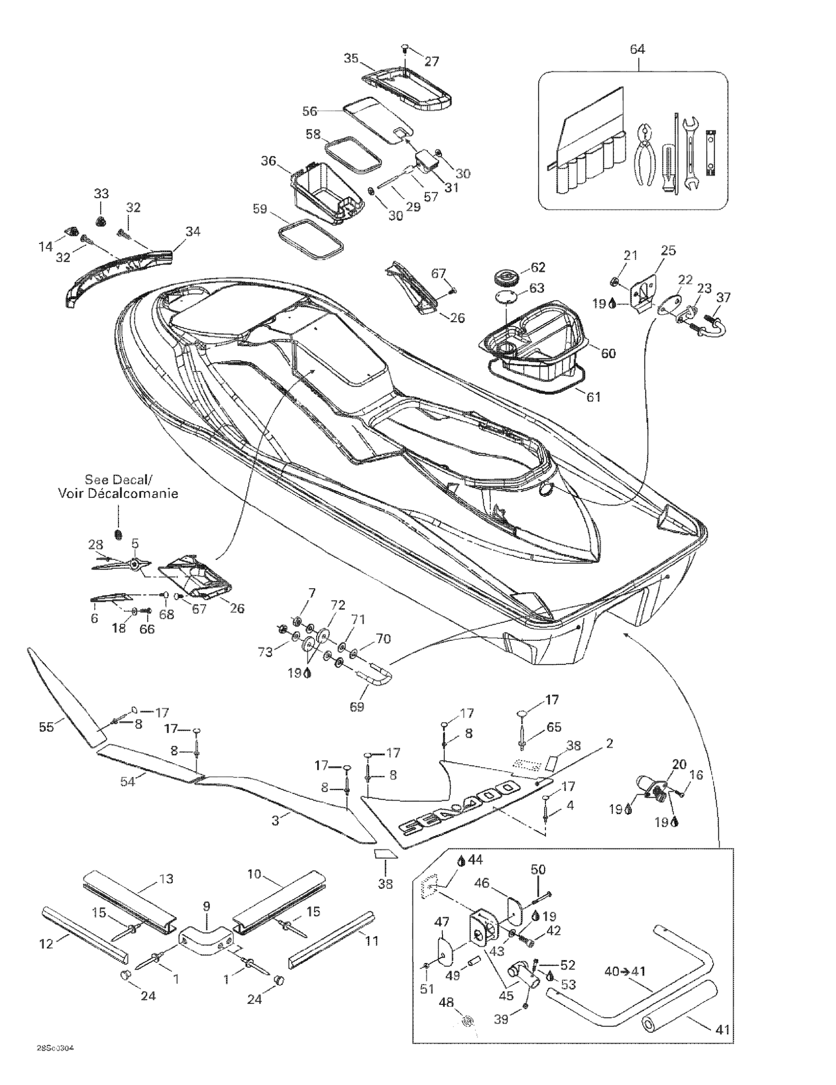 Sea-doo GTX DI, 6118/6119, 2003 Body, Rear View Diagram