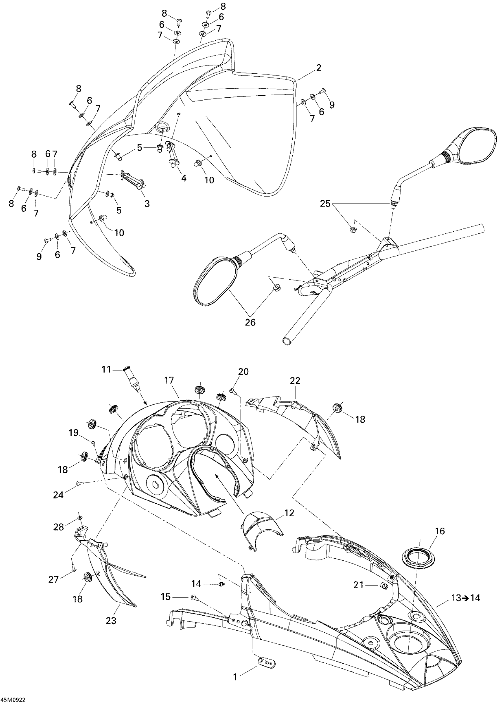 Ski-Doo GTX Fan, 2009 Windshield And Console Diagram