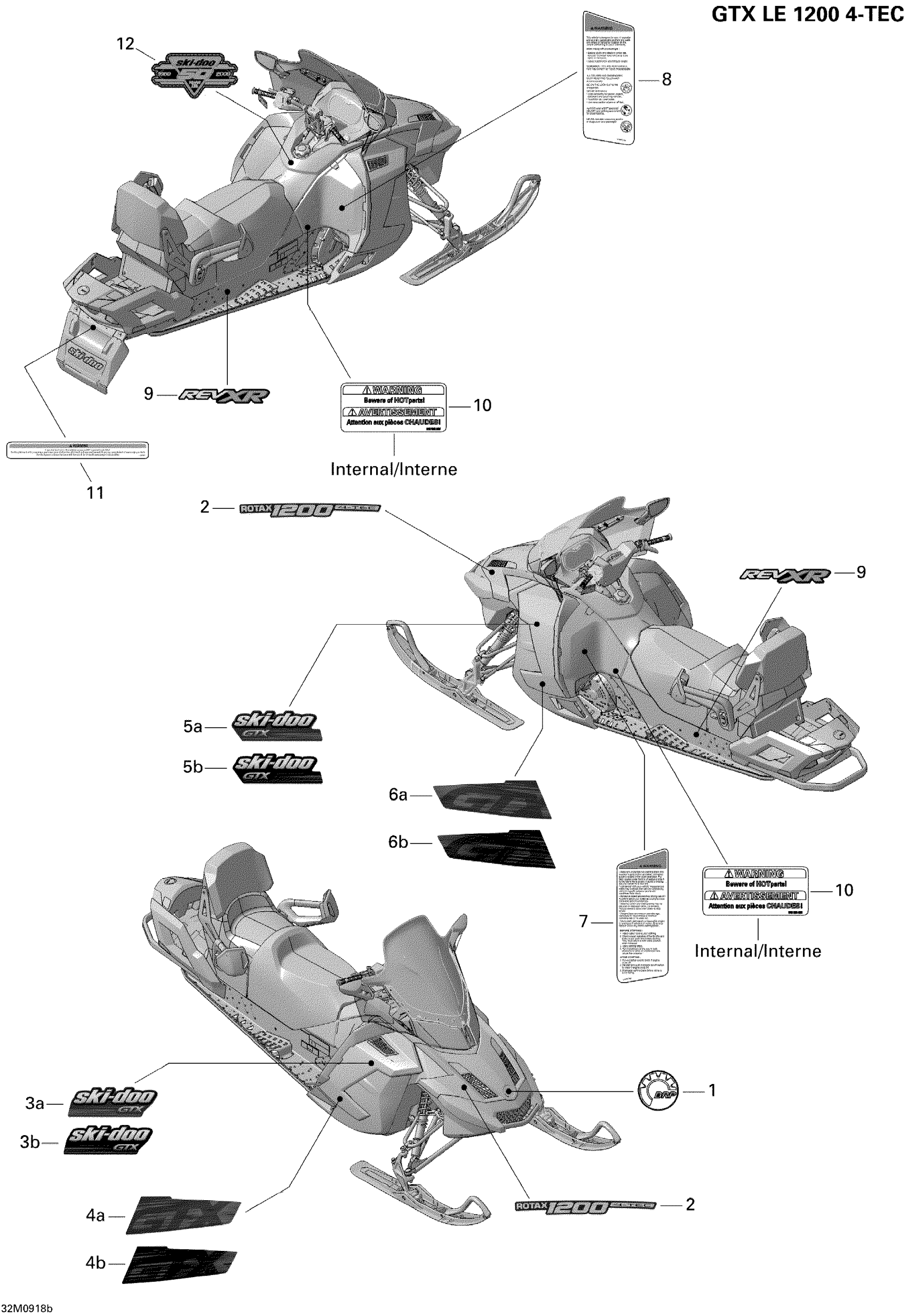 Ski-Doo GTX LE 1200 4-TEC, 2009 Decals 1200 Diagram