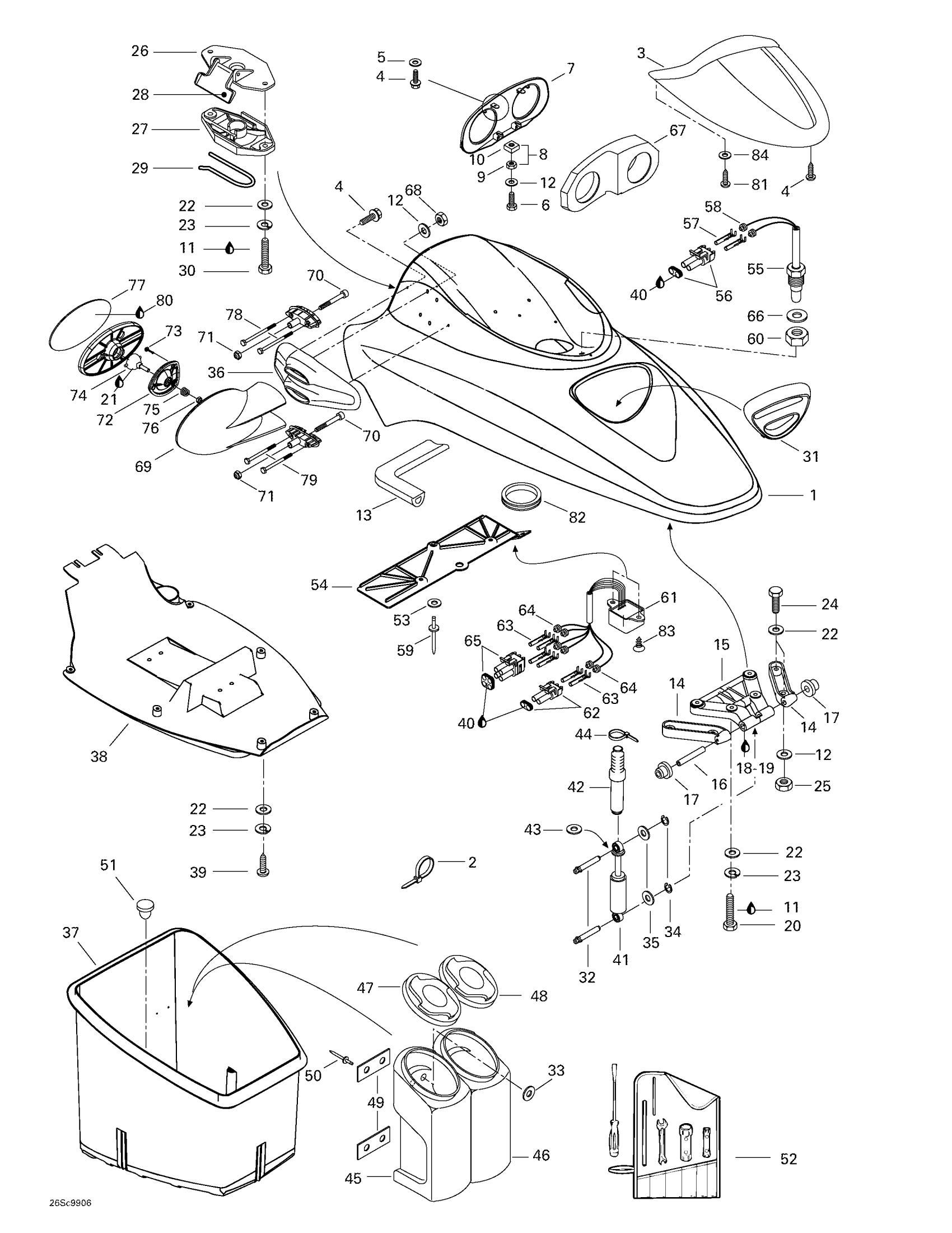 Sea-doo GTX Limited, 5888/5889, 1999 Front Storage Compartment Diagram
