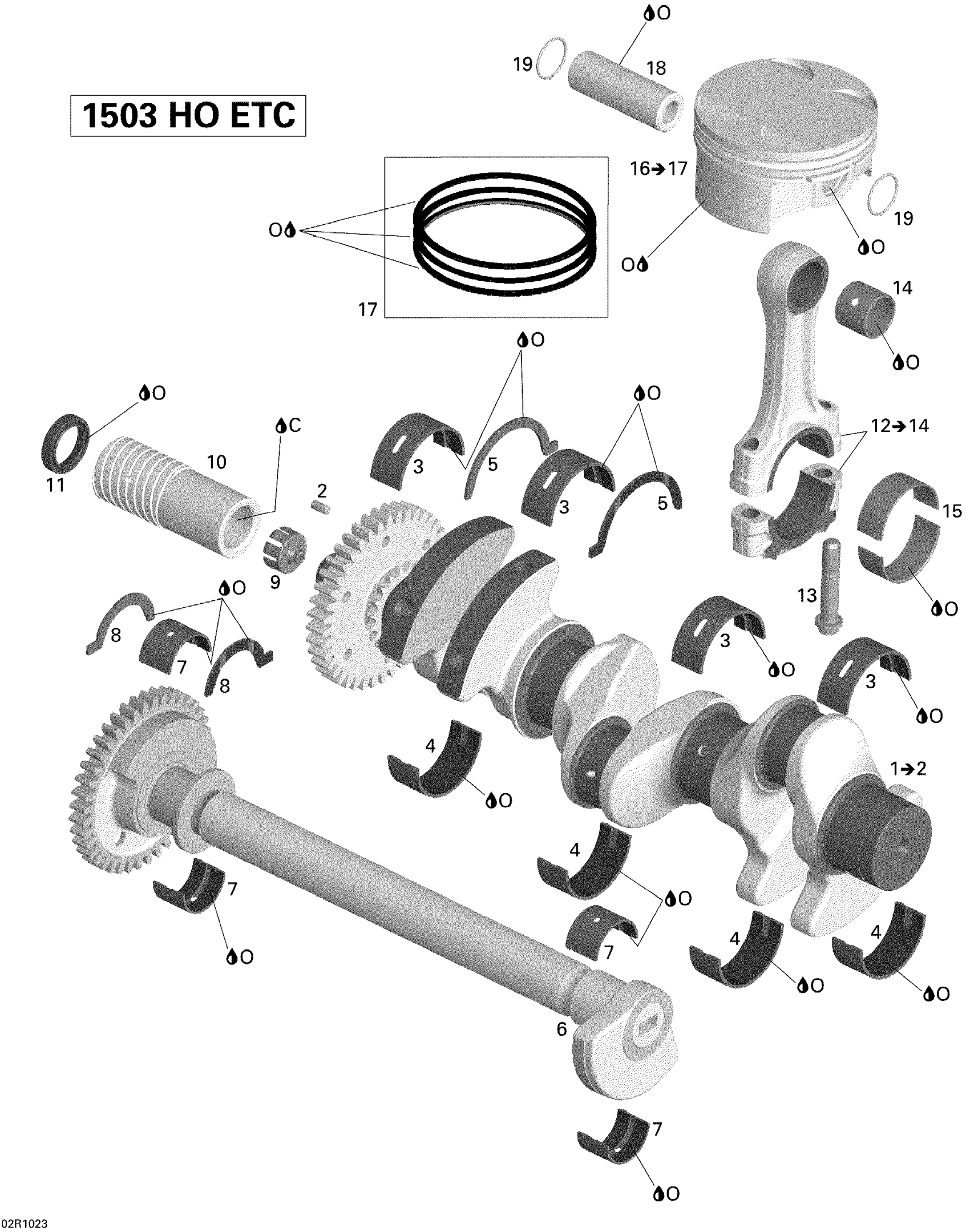 Sea-doo GTX LTD iS 260, 2010 01- Crankshaft, Pistons And Balance Shaft Diagram