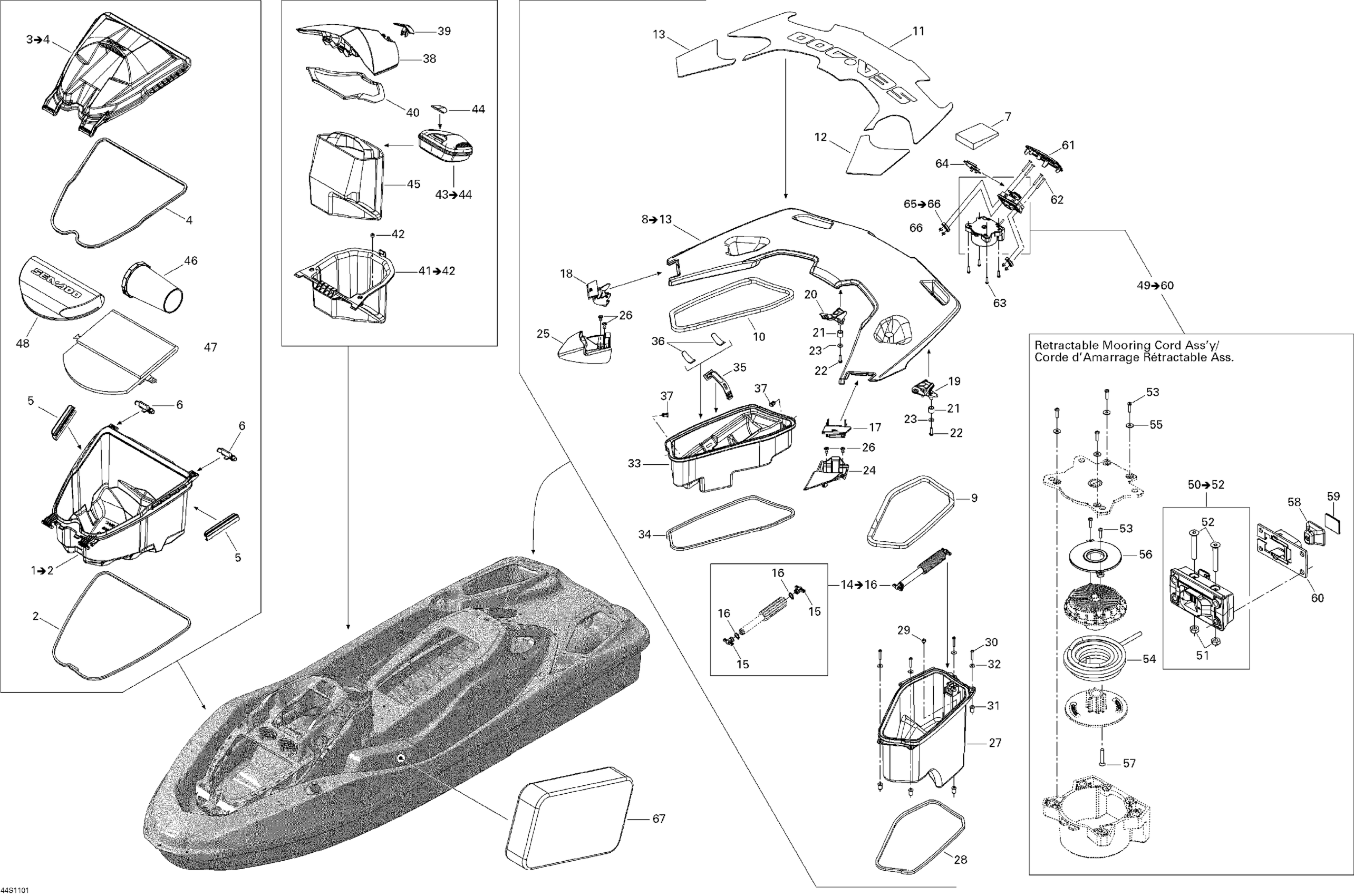 Sea-doo GTX LTD iS 260, 2011 09- Storage Compartments Diagram
