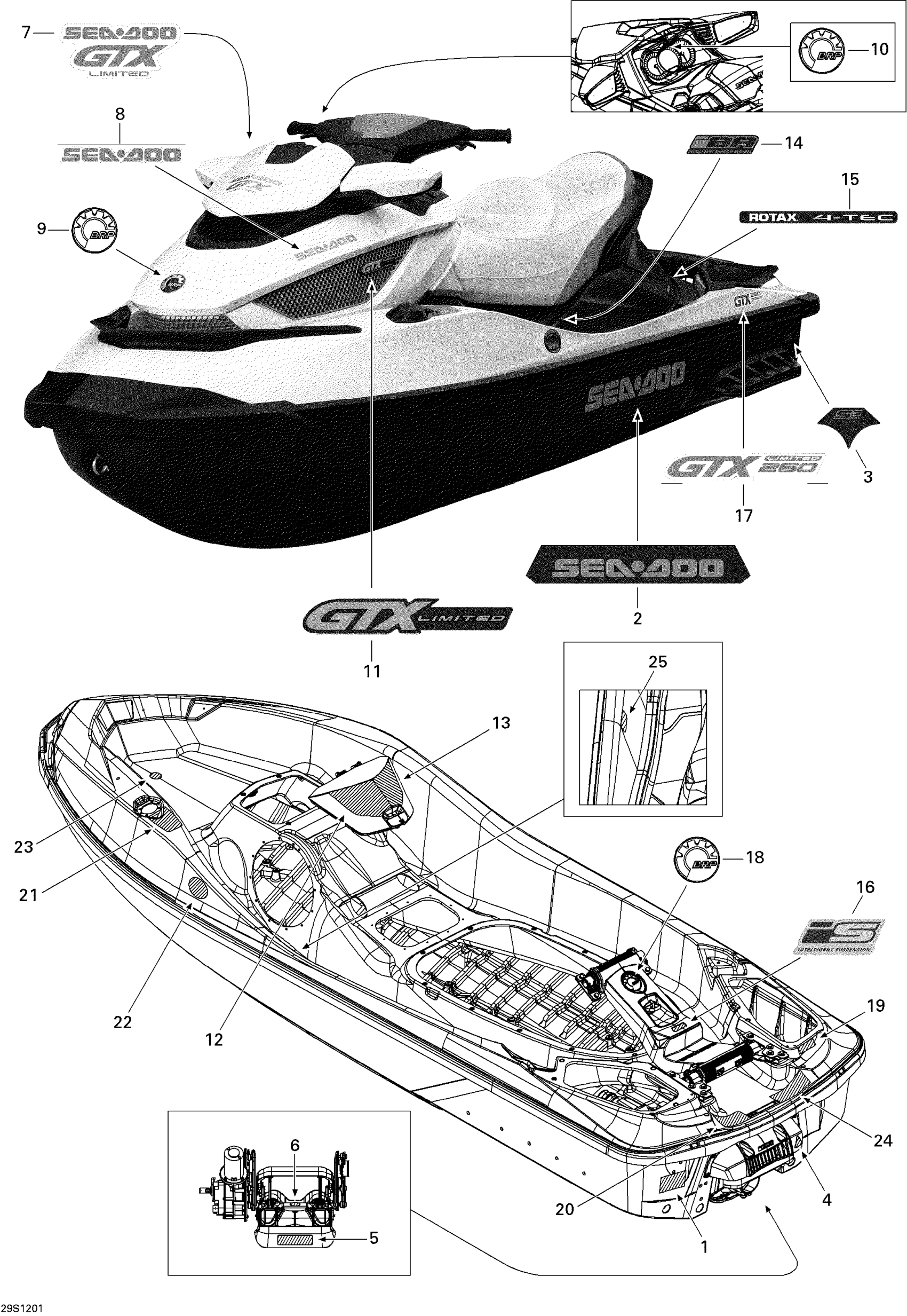 Sea-doo GTX LTD iS 260, 2012 09- Decals Diagram