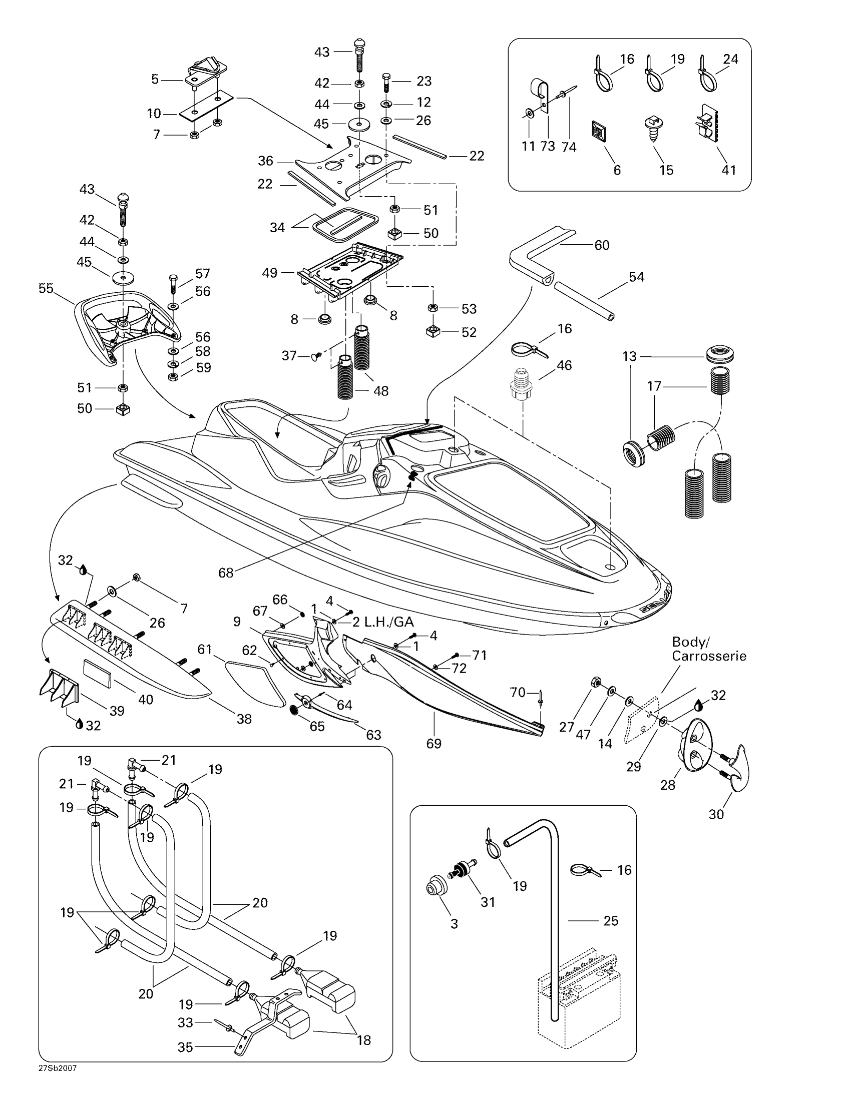 Sea-doo GTX RFI, 5648/5658/5515/5516, 2000 09- Body, Front View Diagram