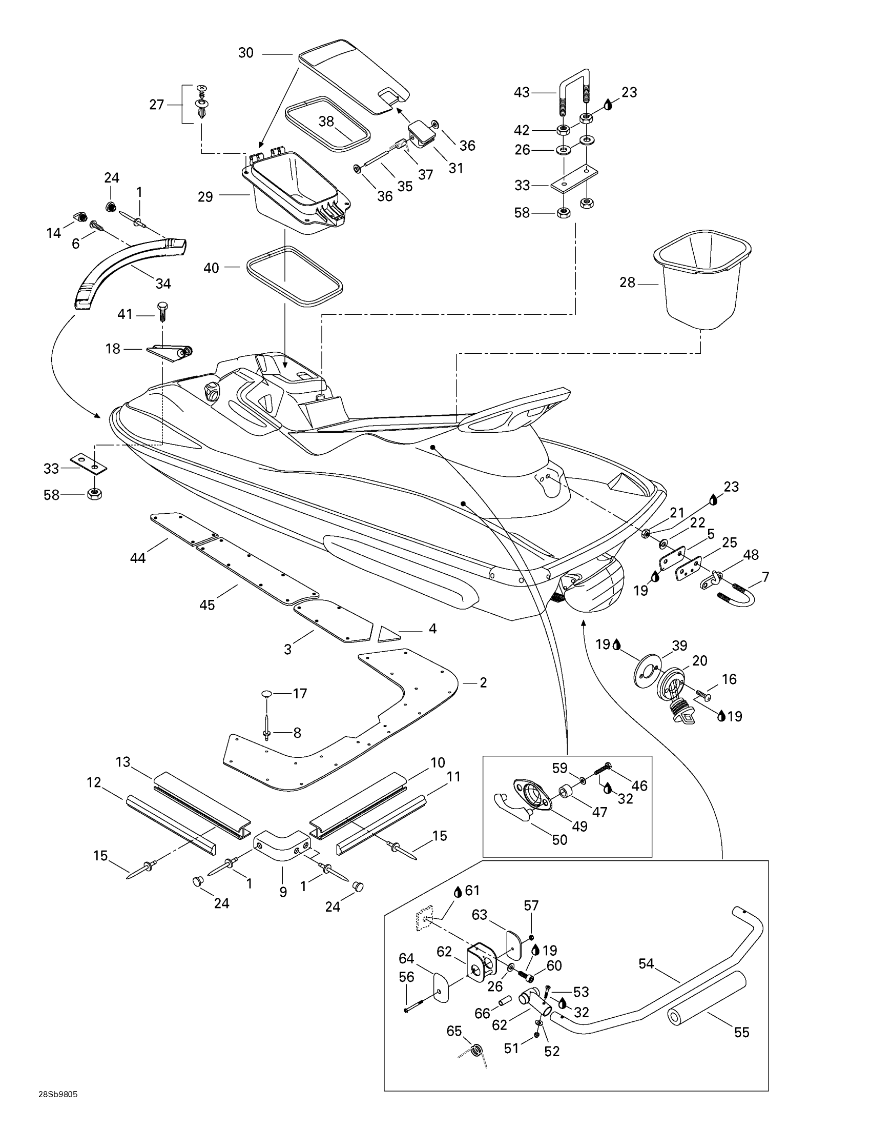 Sea-doo GTX RFI, 5666/5843, 1998 Body Diagram
