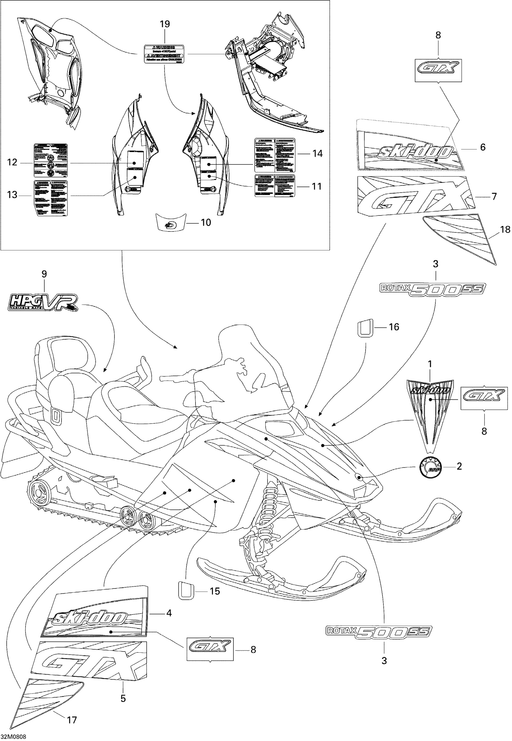 Ski-Doo GTX SPORT 500SS, 2008 Decals Diagram