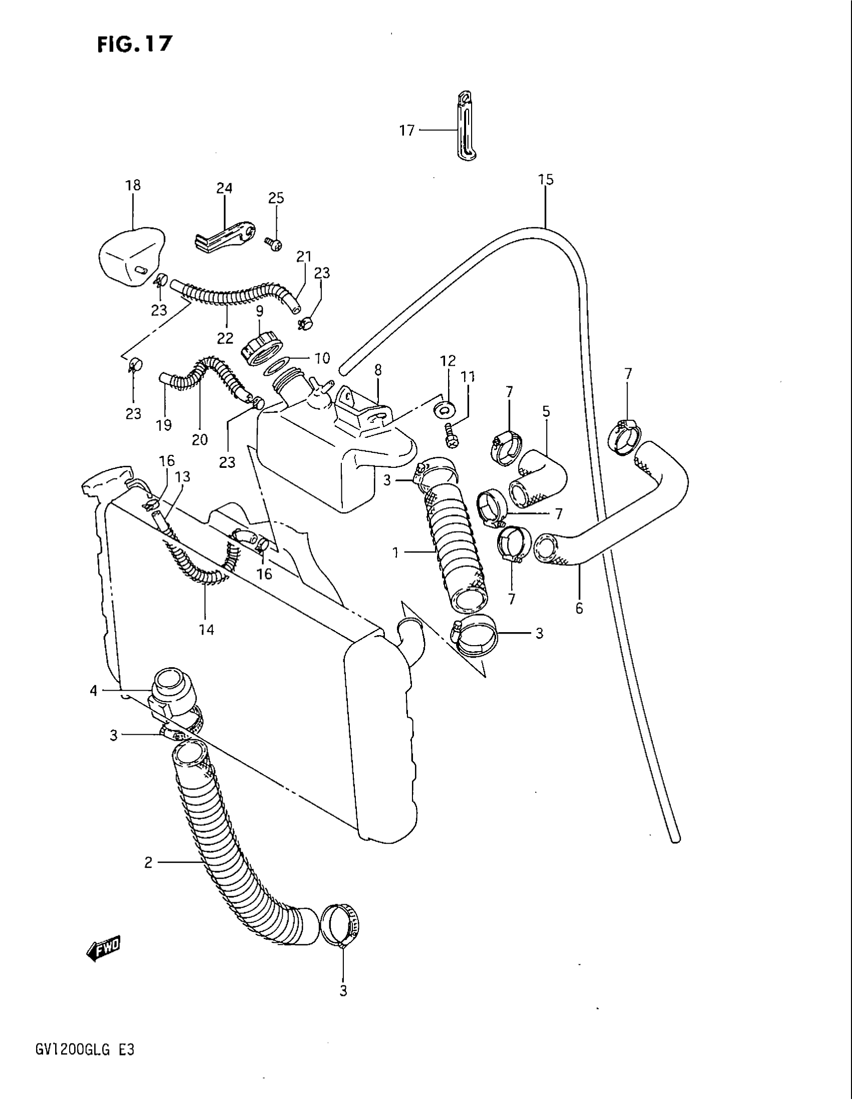 Suzuki GV1200GLF (1986) RADIATOR HOSE - RESERVE TANK Diagram