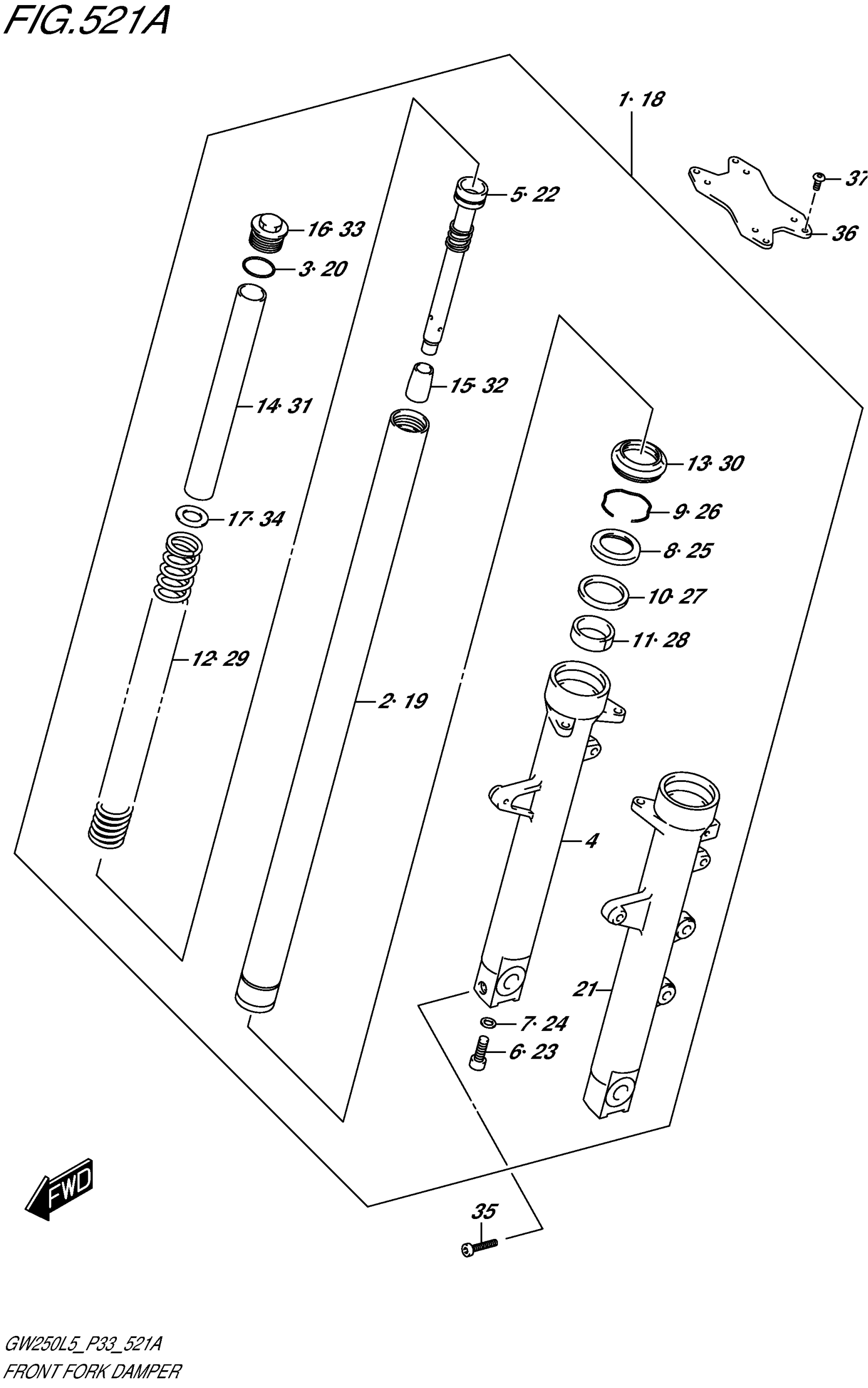 Suzuki GW250L5 (2015) FRONT FORK DAMPER Diagram