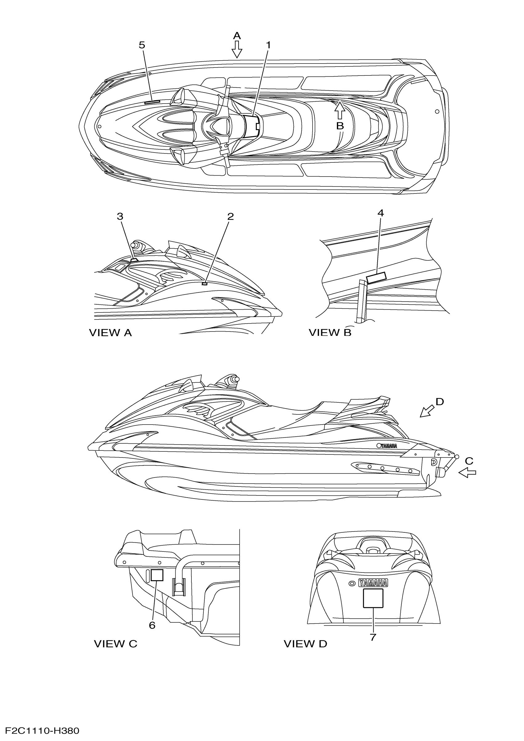 Yamaha GX1800AHR (WAVERUNNER FZS) F2C10 2009 IMPORTANT LABELS Diagram