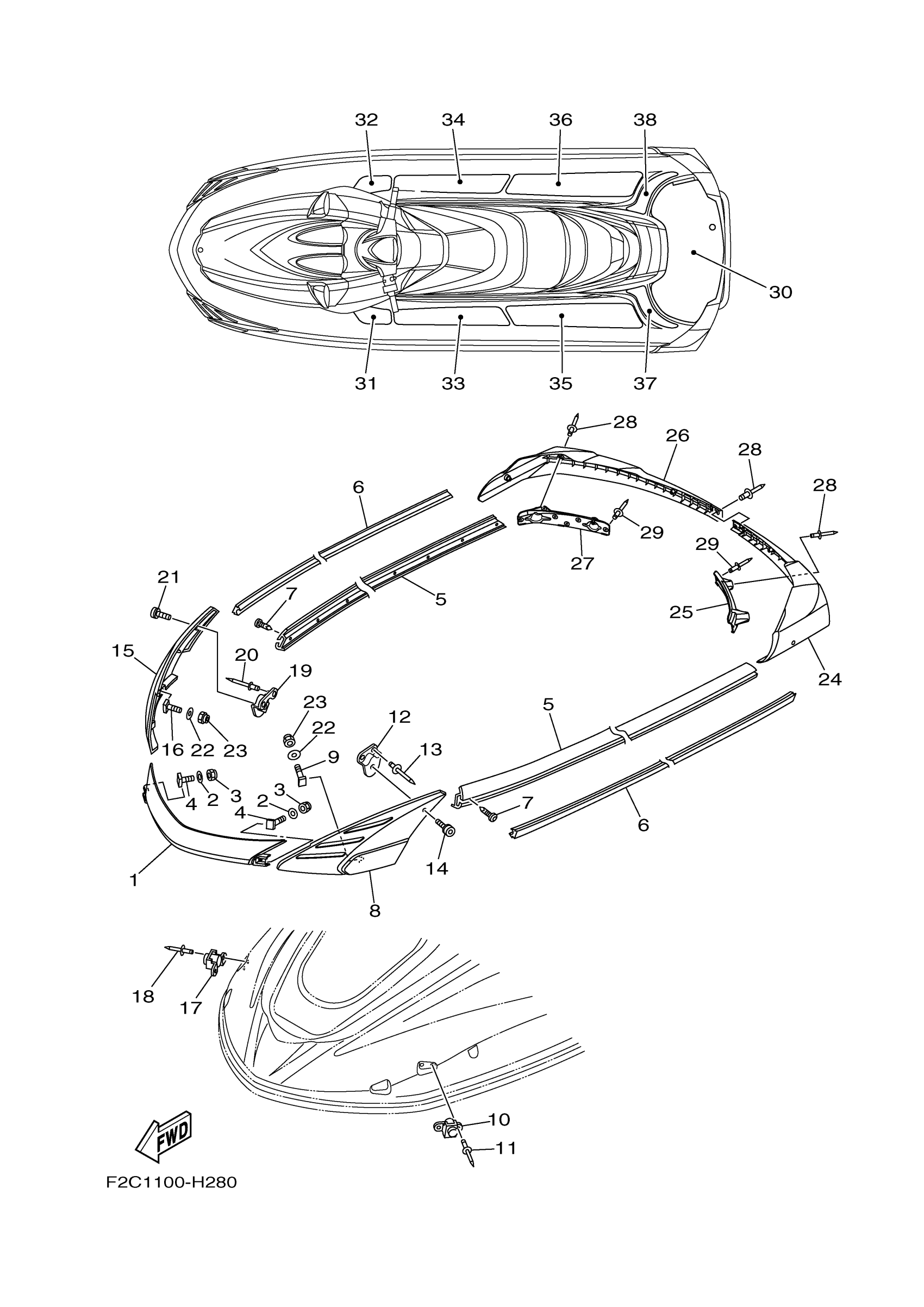 Yamaha GX1800HB (WAVERUNNER FZR) F2R1 2009 GUNWALE & MAT Diagram