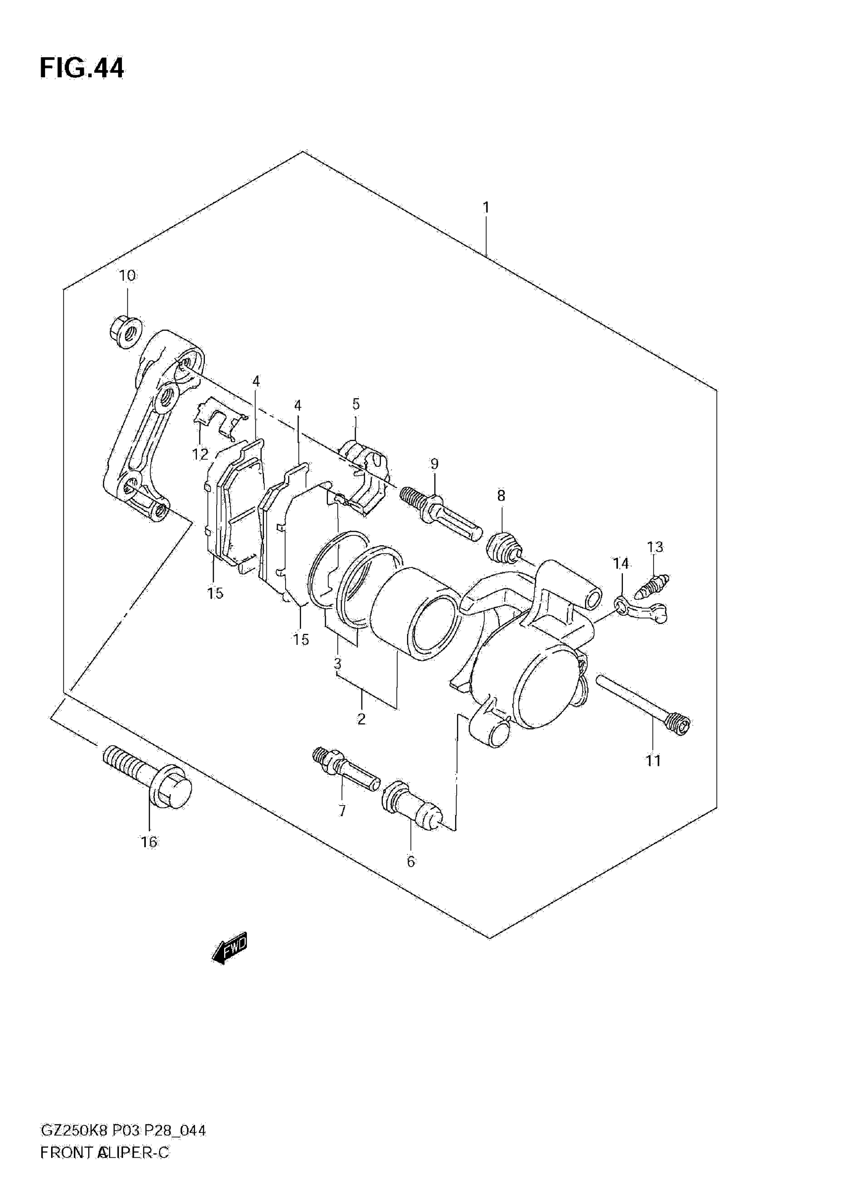 Suzuki GZ250K8 (2010) FRONT CALIPER Diagram