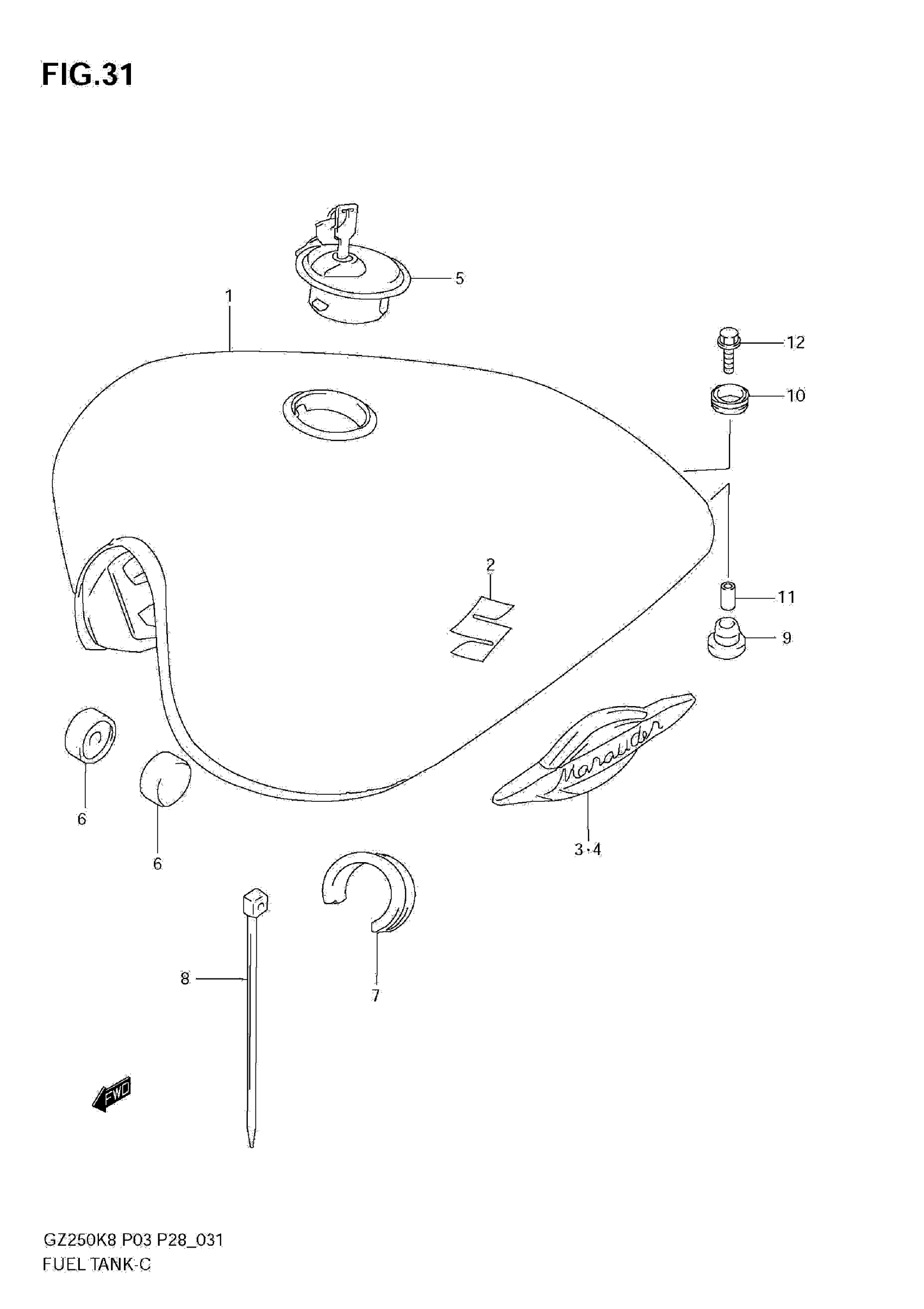 Suzuki GZ250K8 (2010) FUEL TANK (MODEL K8/K9) Diagram