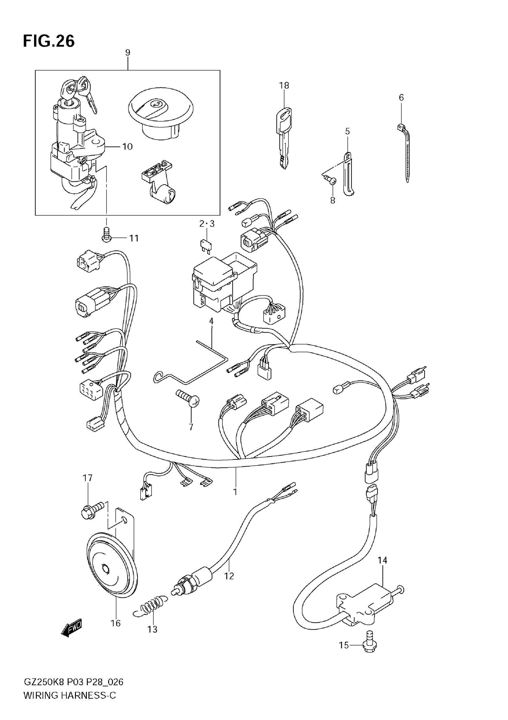 Suzuki GZ250K8 (2010) WIRING HARNESS Diagram