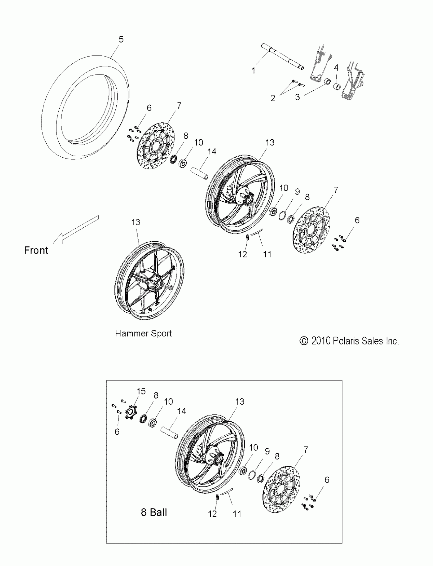Polaris HAMMER ALL OPTIONS - V11HA36/HB36/HS36 WHEELS, FRONT - V11HA36/HB36/HS36 ALL OPTIONS (49VICWHEELFRT11HMR) Diagram