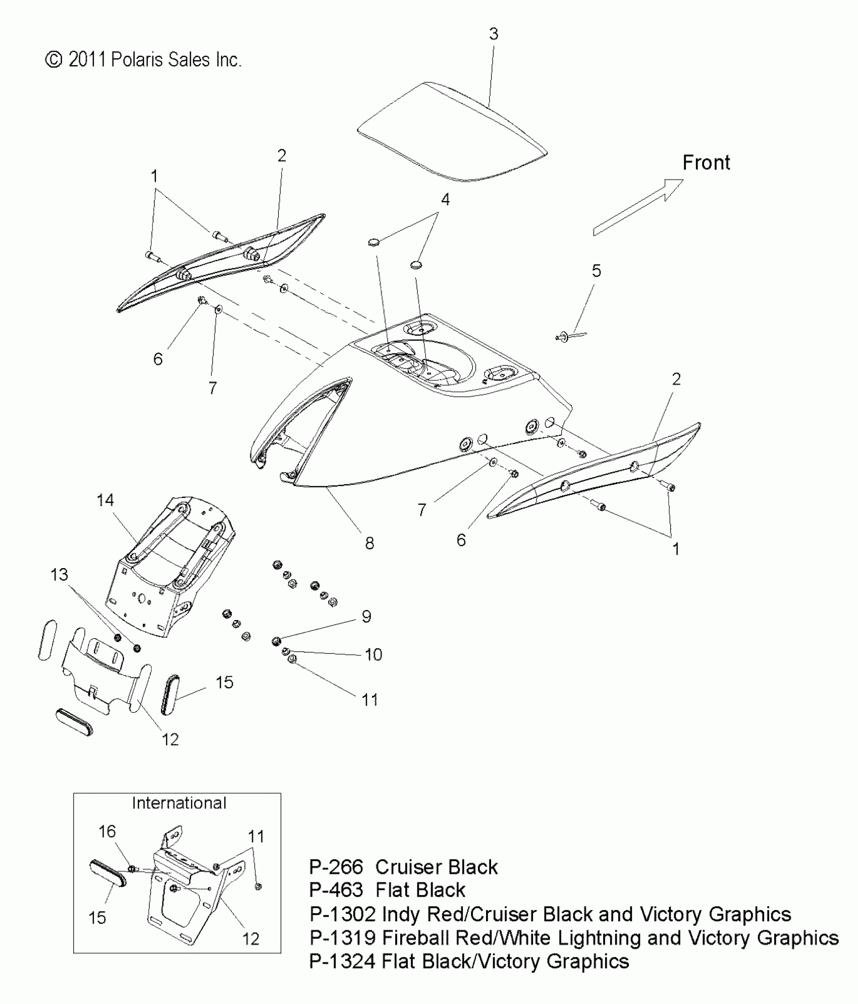 Polaris HAMMER S/8 BALL ALL OPTIONS - V12HS36/HA36 BODY, FENDER, REAR - V12HS36/HA36 ALL OPTIONS (49VICFENDERRR12HMR) Diagram