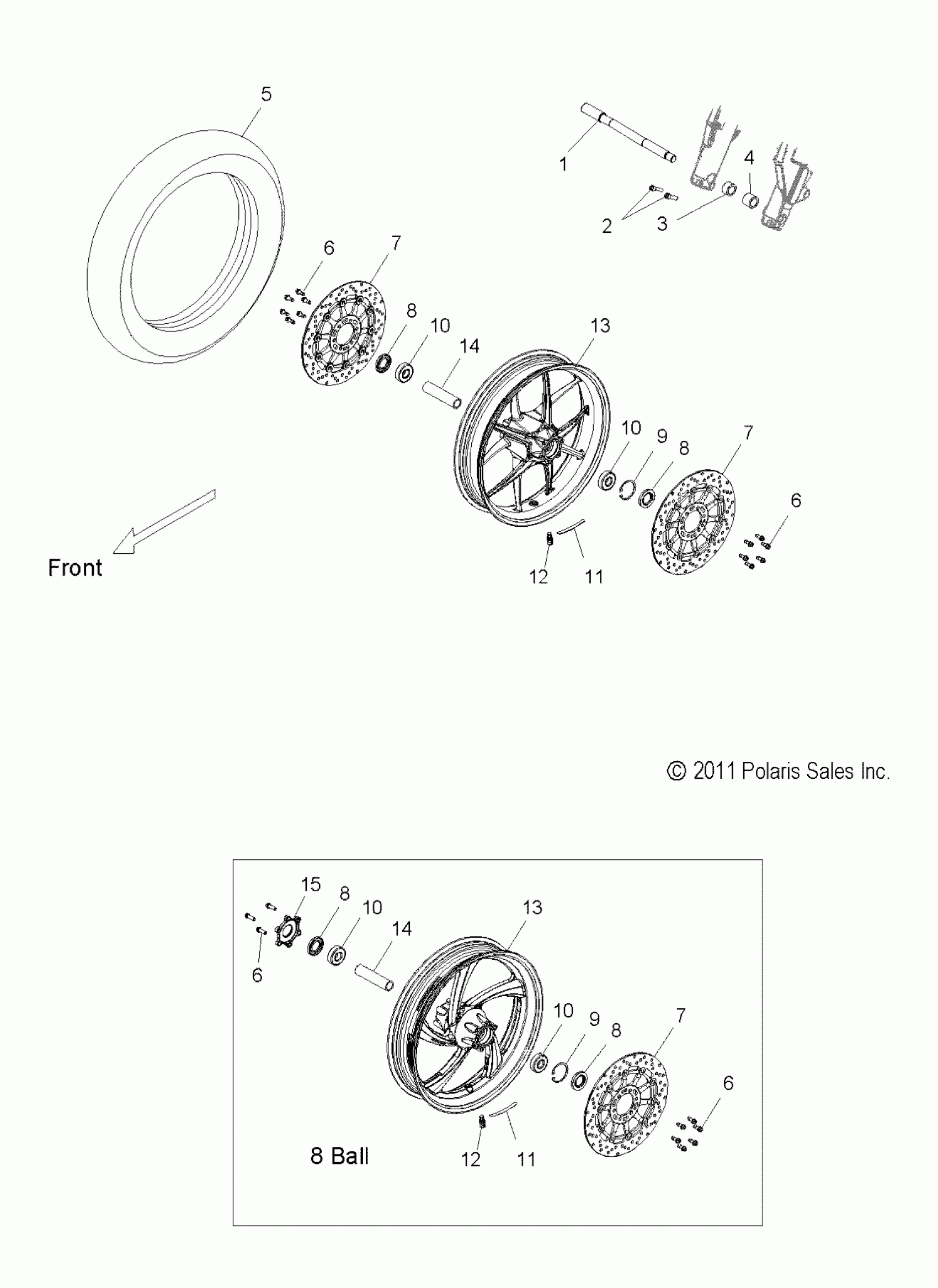 Polaris HAMMER S/8 BALL ALL OPTIONS - V12HS36/HA36 WHEELS, FRONT - V12HS36/HA36 ALL OPTIONS (49VICWHEELFRT12HMR) Diagram