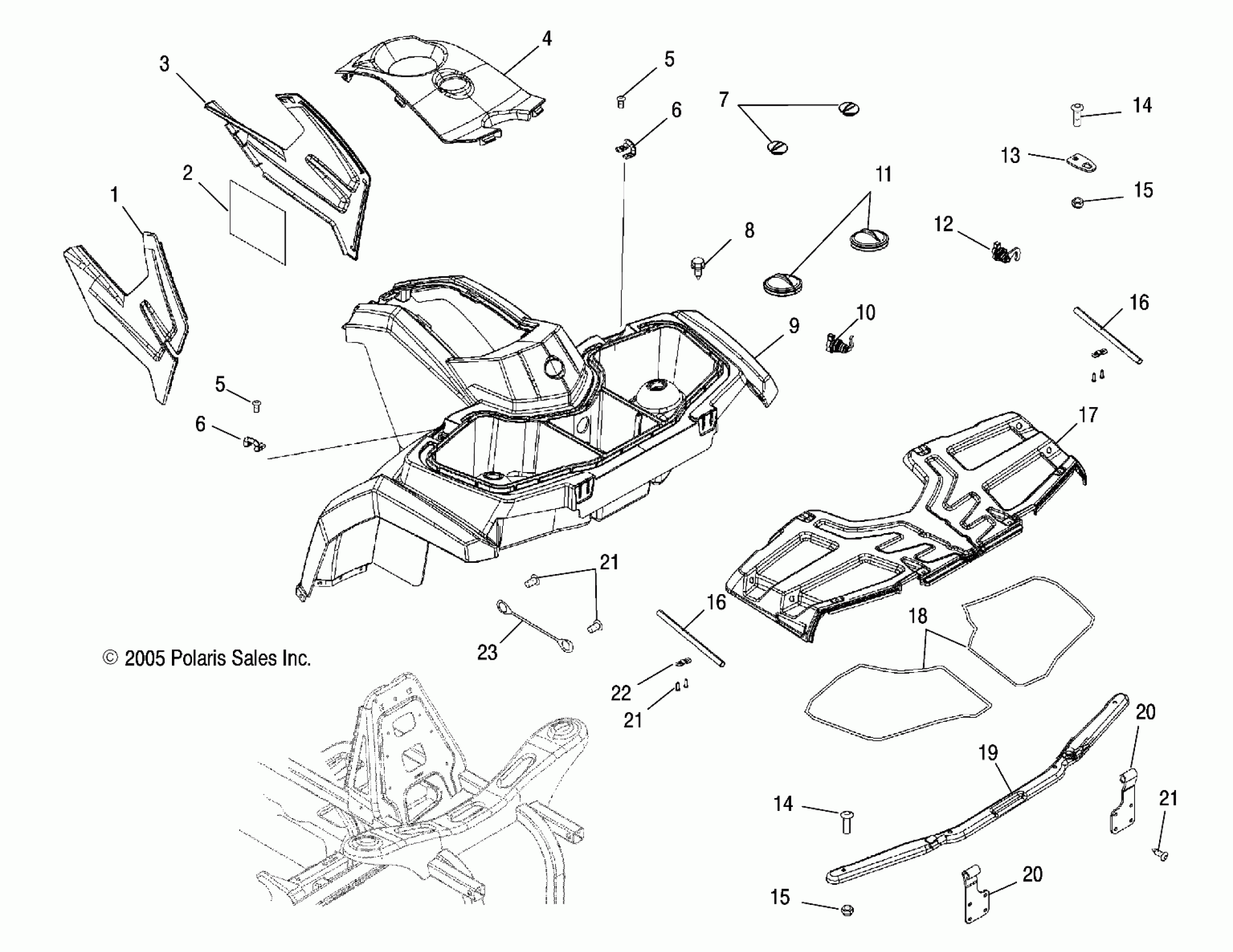 Polaris HAWKEYE 2X4/4X4 - A06LB27AA CAB, FRONT - A06LB27AA/LD27AA/AB/AC/AD (4999202079920207A05) Diagram