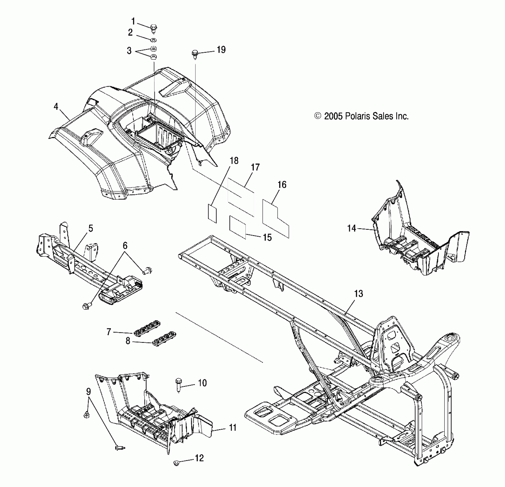 Polaris HAWKEYE 2X4/4X4 - A06LB27AA CAB, REAR, FRAME, and FOOTWELLS - A06LB27AA/LD27AA/AB/AC/AD (4999202079920207A03) Diagram