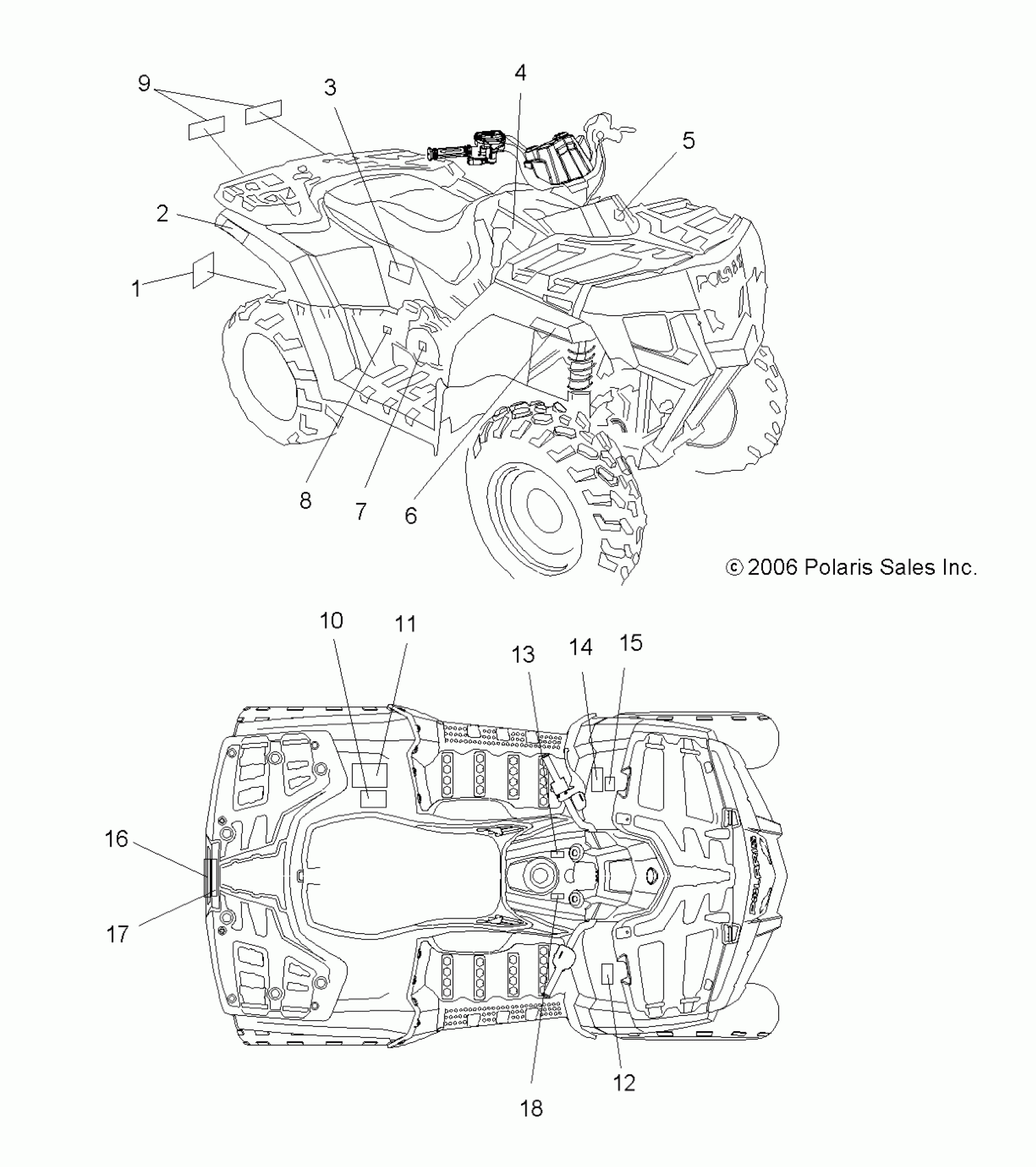 Polaris HAWKEYE 2X4/4X4 - A07LB27AA/AC/LH27AA/AB/AC/AD/AL DECALS - A07LB27AA/AC/LH27AA/AB/AC/AD/AL (49ATVDECAL07HAWK) Diagram