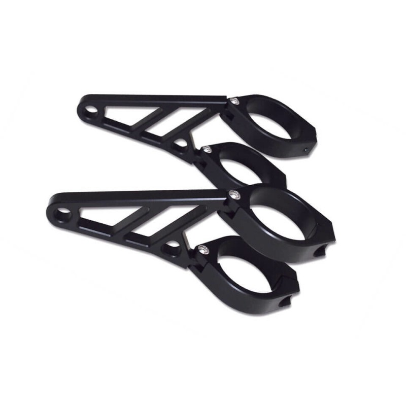 - Kit includes four fork clamps, reduction strips, and two extension brackets