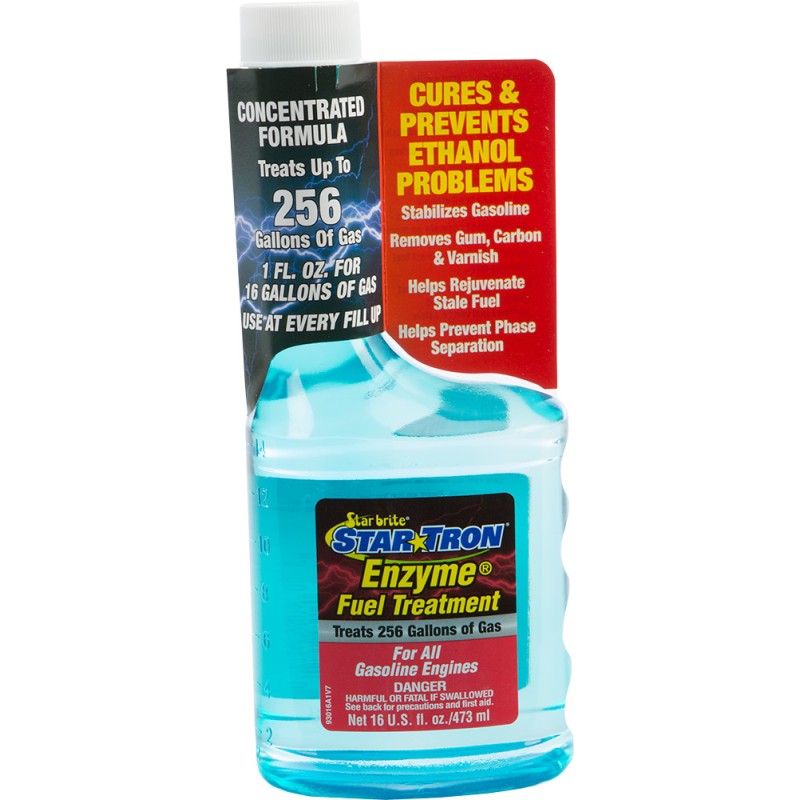 Unique enzyme formula prevents phase separation and fuel gelling by breaking down water and sludge to sub-micron size particles allowing it to be safely burned away during normal engine operation, eliminating ethanol fuel problems.
