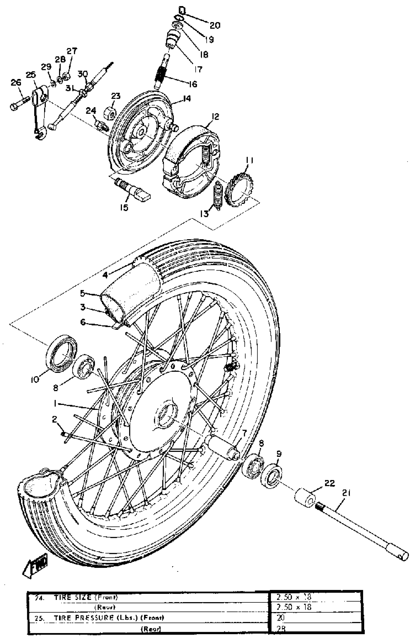 Yamaha HS1 (HS1) 1970 FRONT WHEEL Diagram
